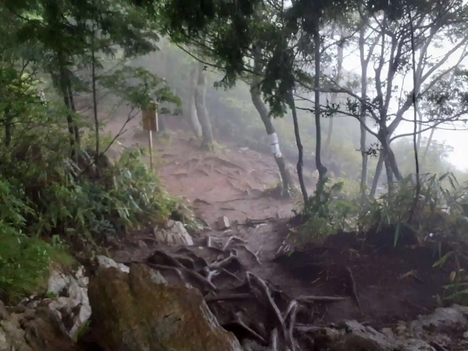 木の根道。山頂を目指します。