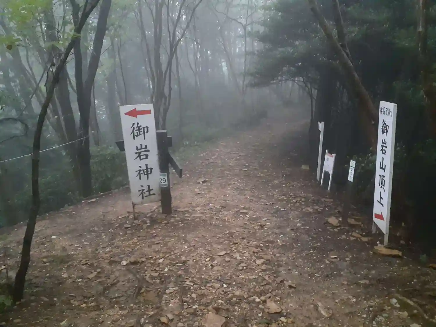結構キツイハイキングです。下山用に杖(社務所で借りられます)と飲料水と汚れても良い靴、軍手等々が必需品と思います。参道登り道でバテてて座り込むハイカー多いようです。