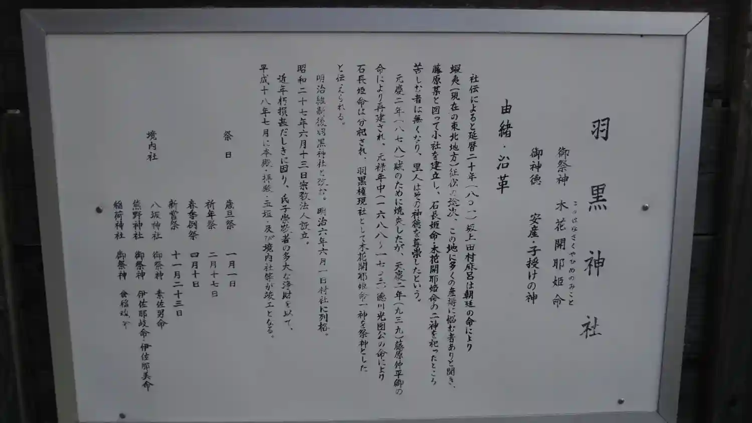 | ご祭神 | 《主》木花開耶姫命 |