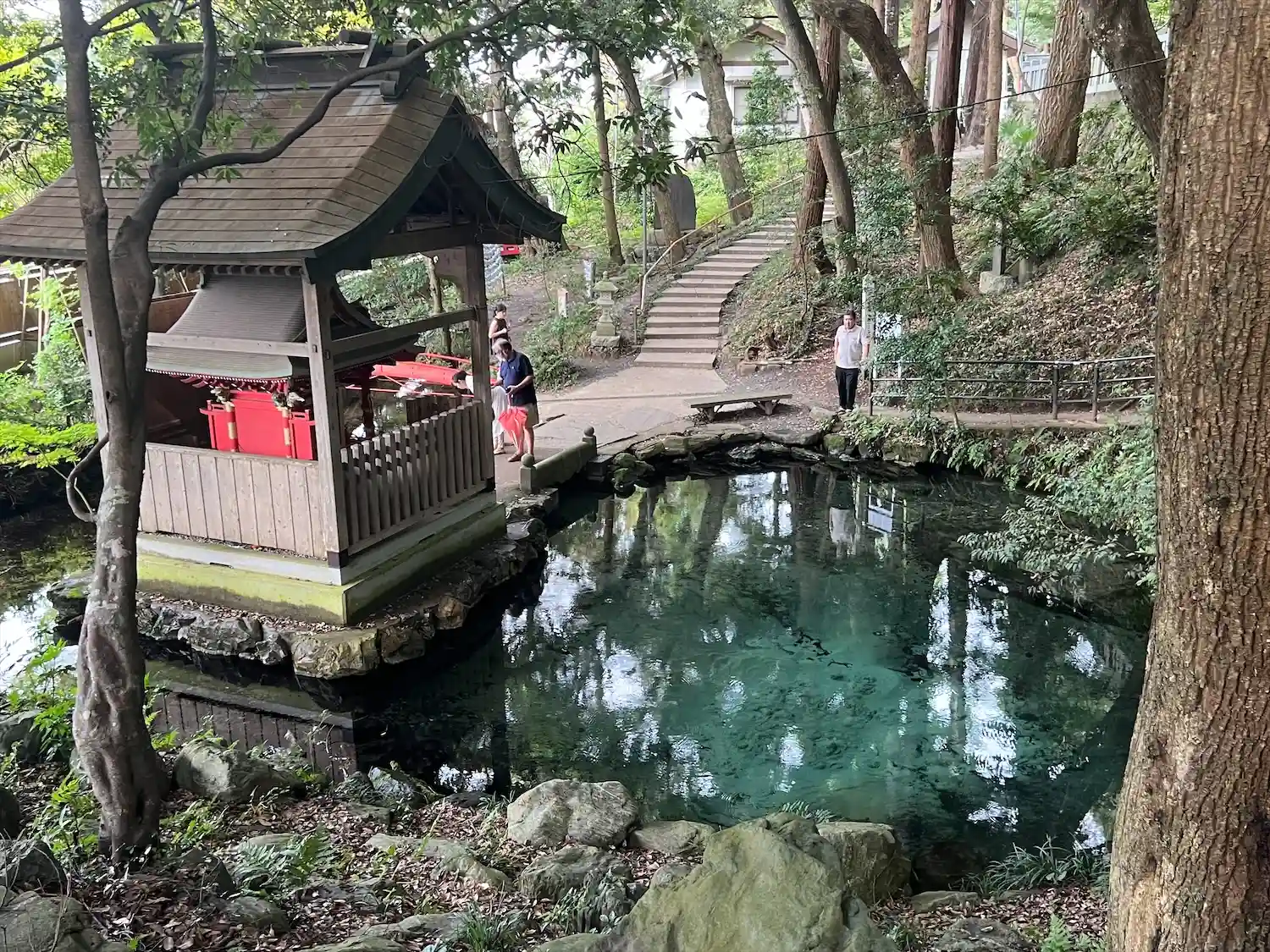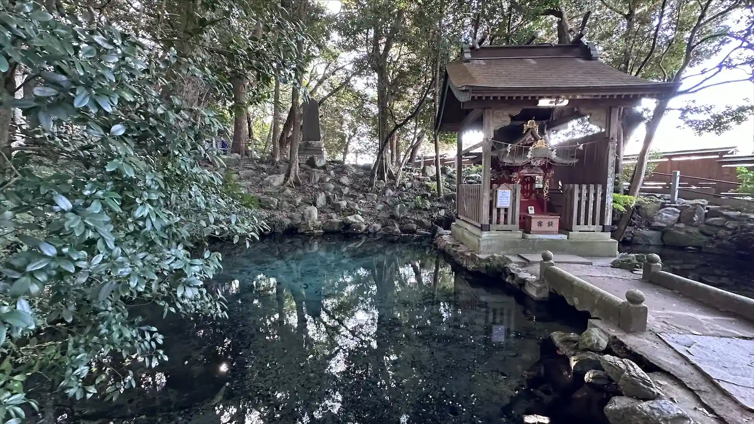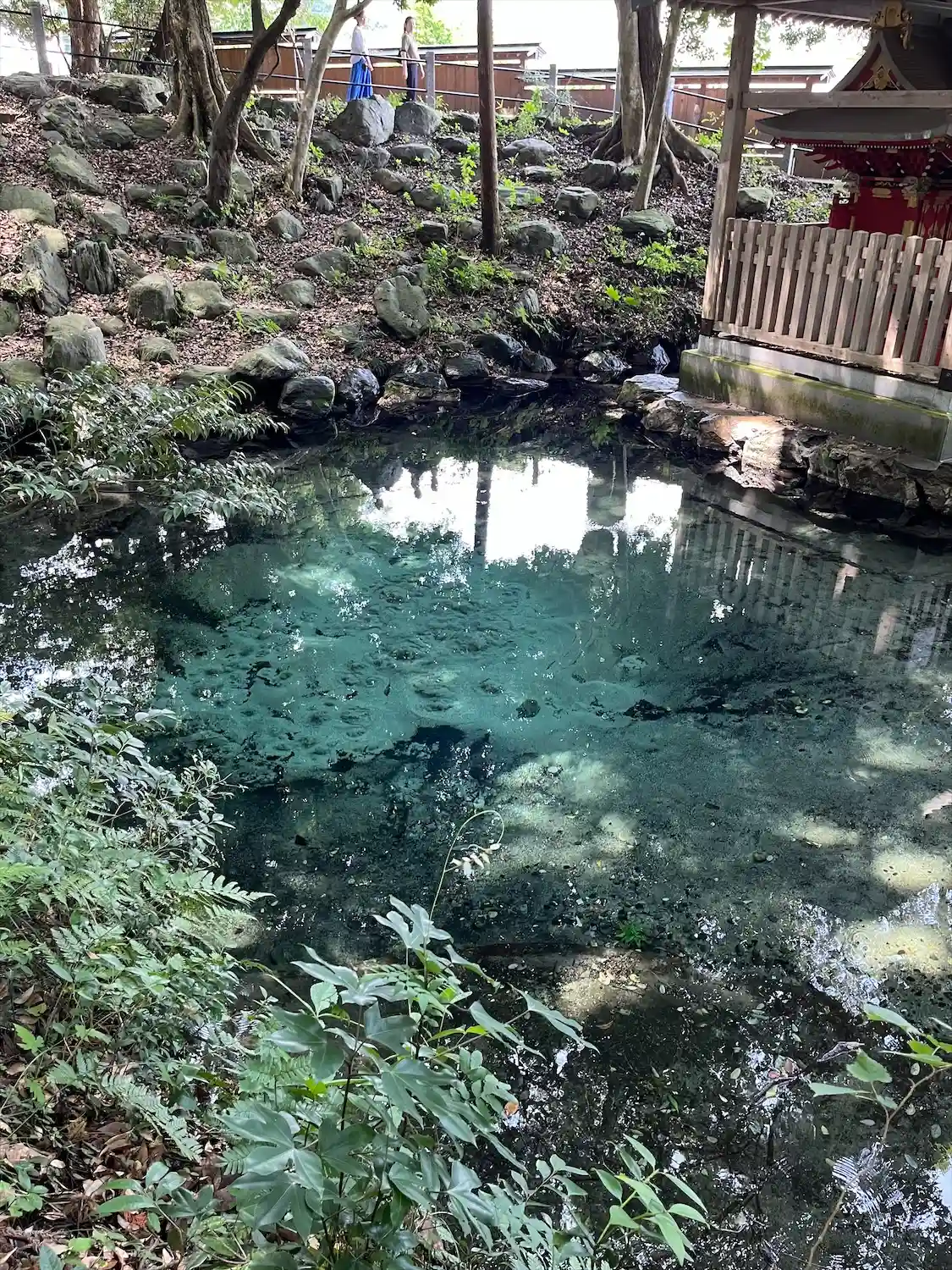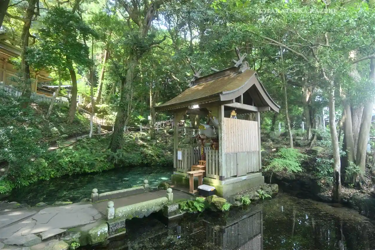 厳島神社と湧水(素敵なコバルトブルー)