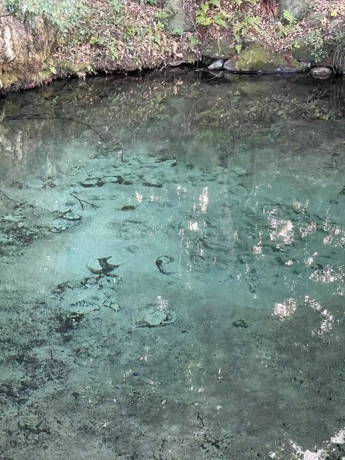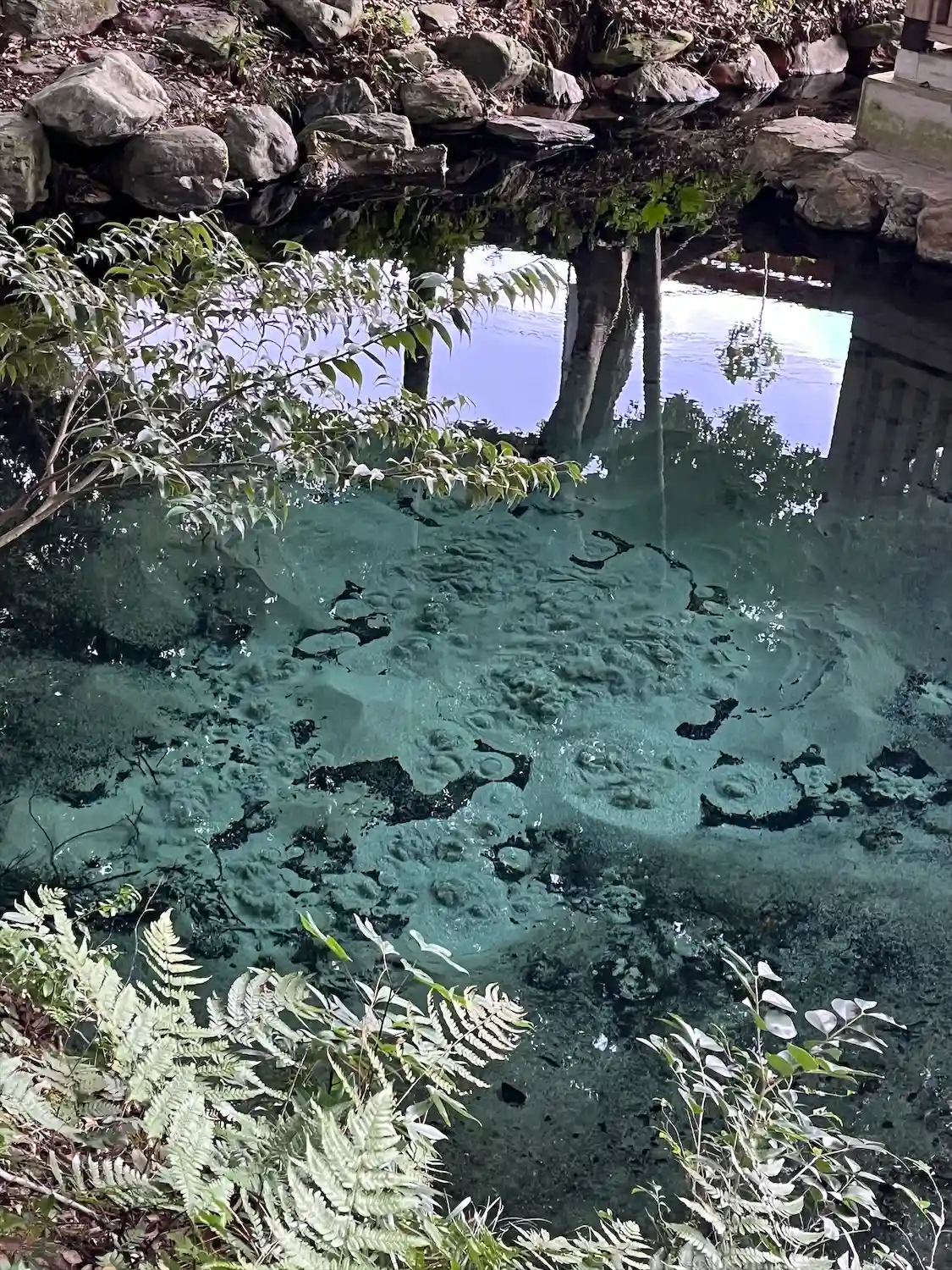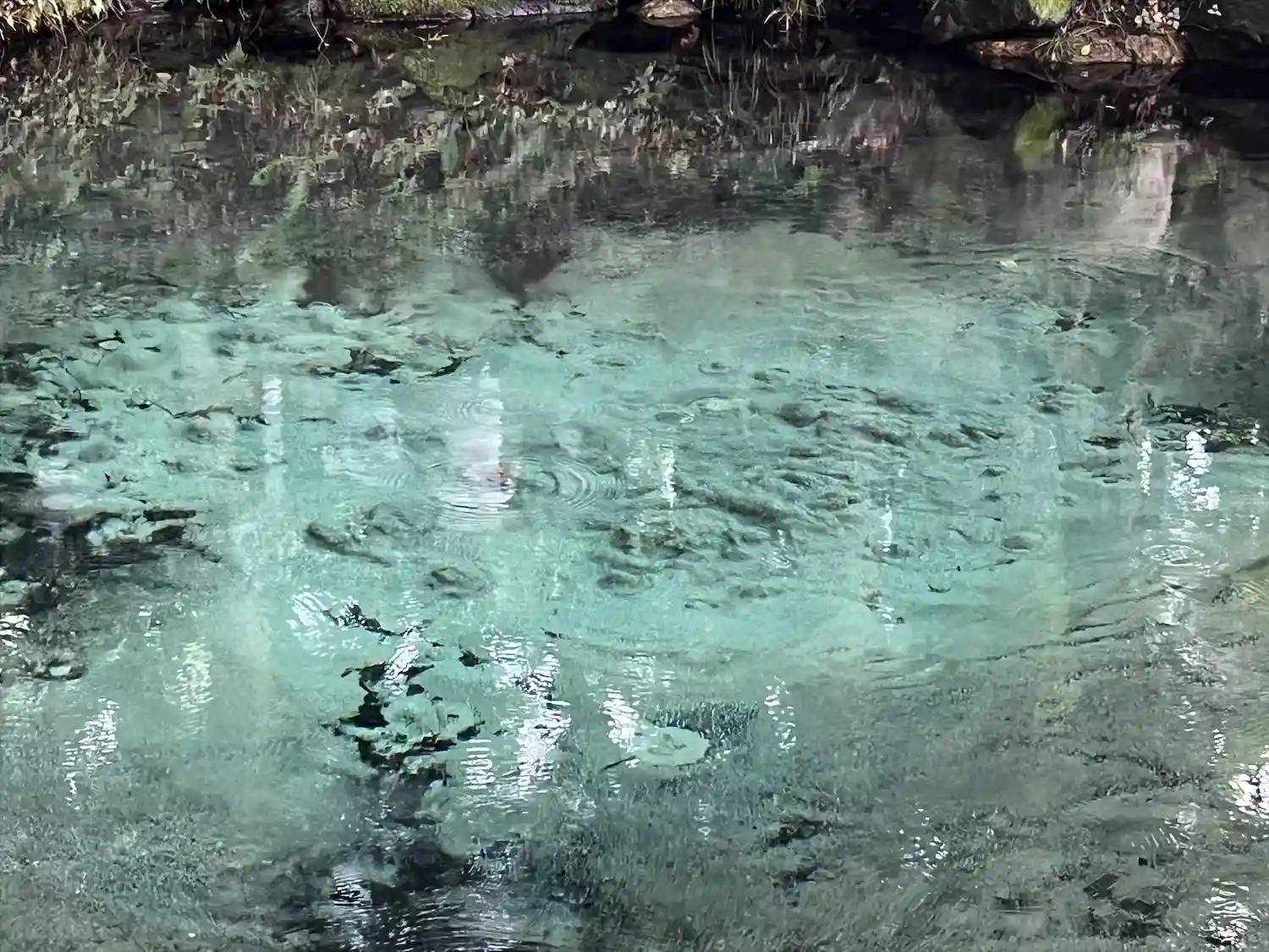 雨模様の中でしたが、泉の水は青かった😊