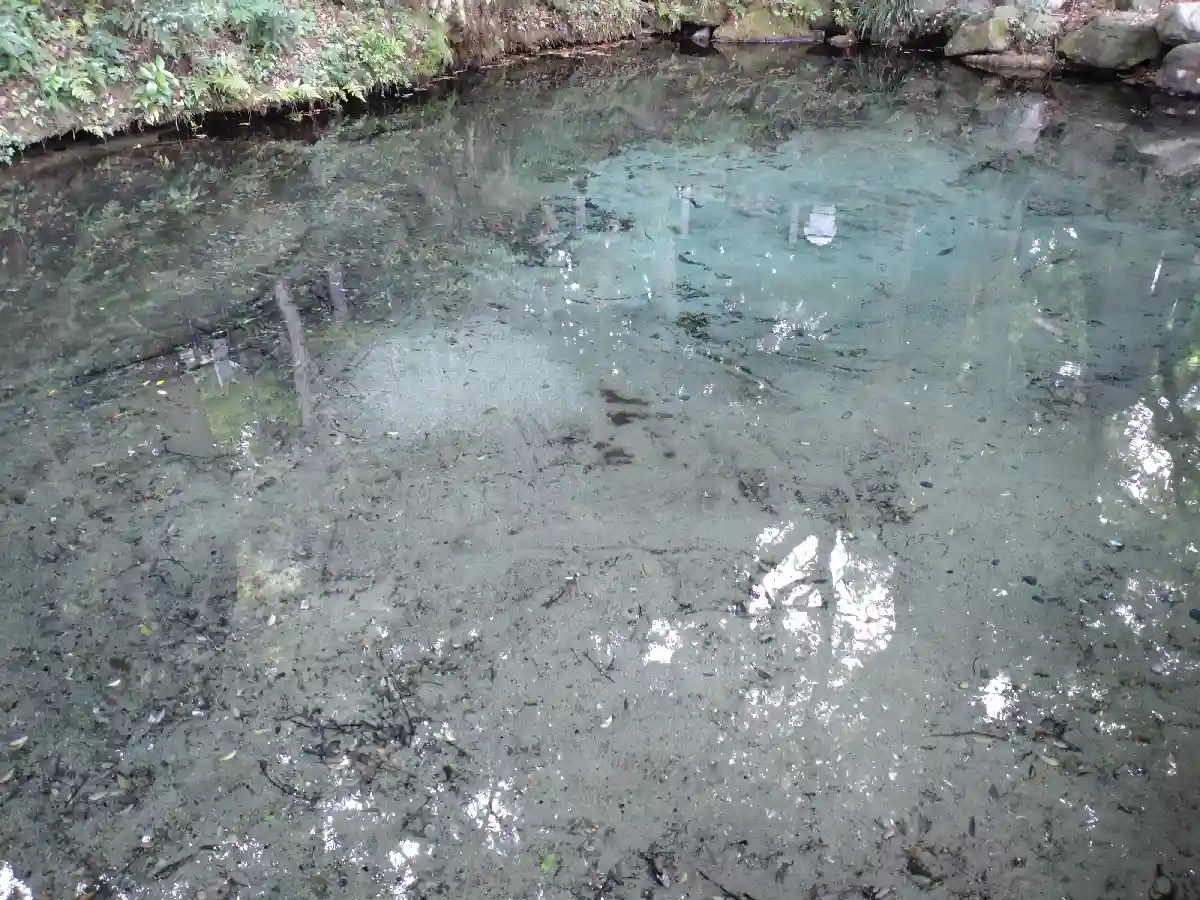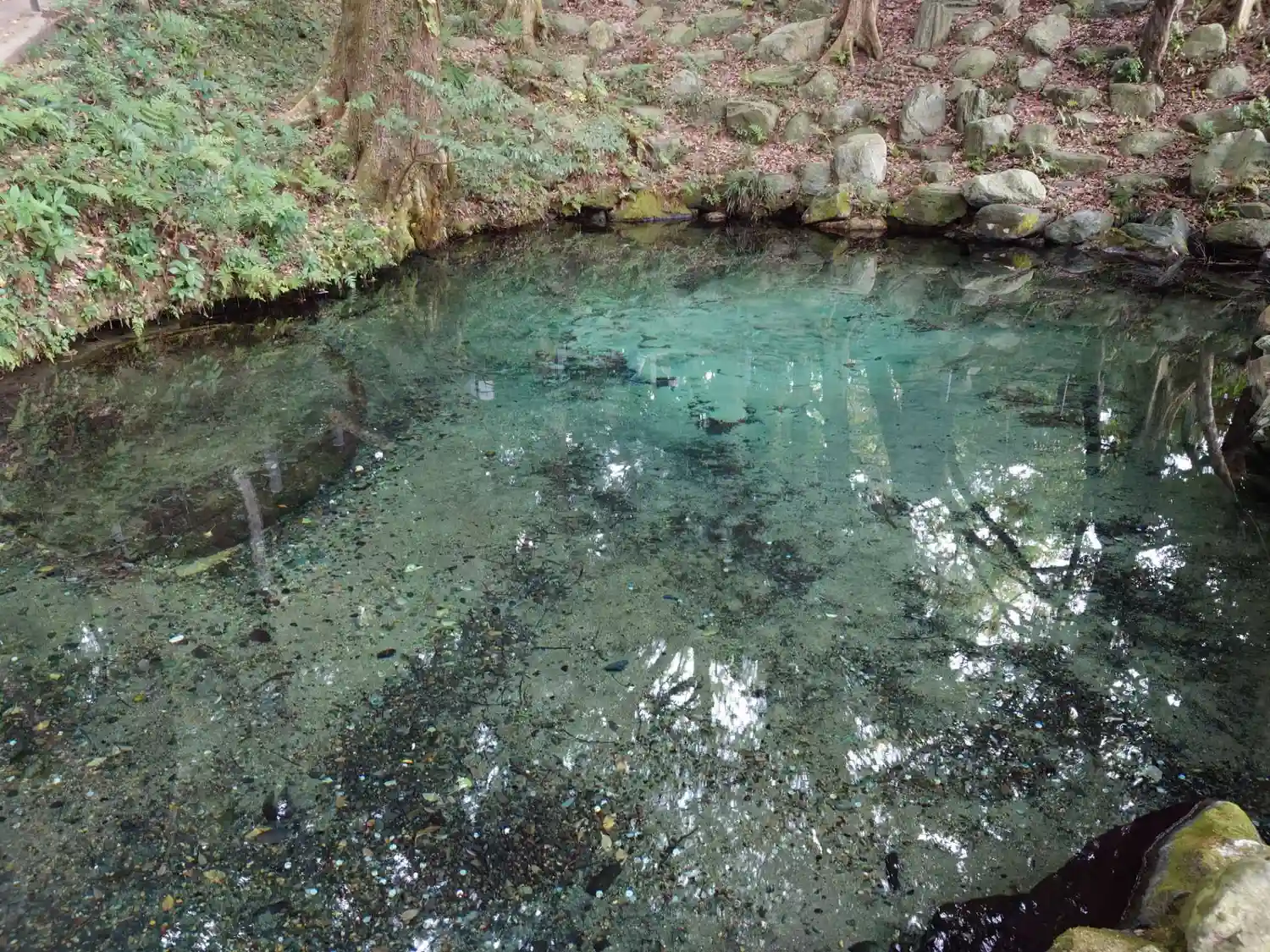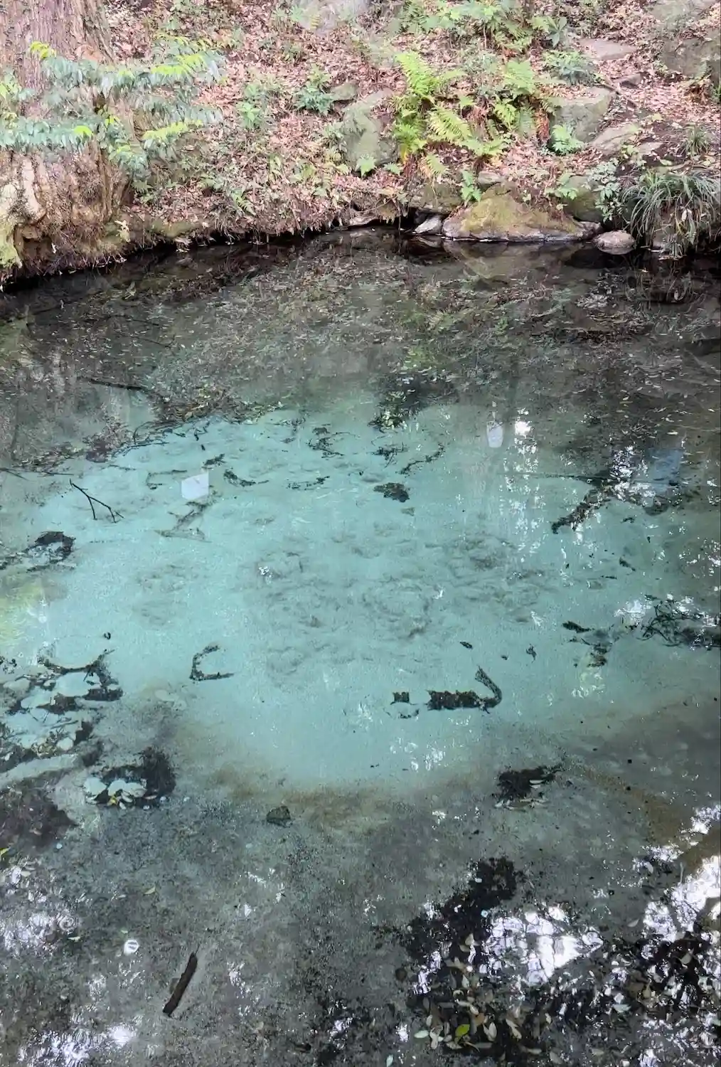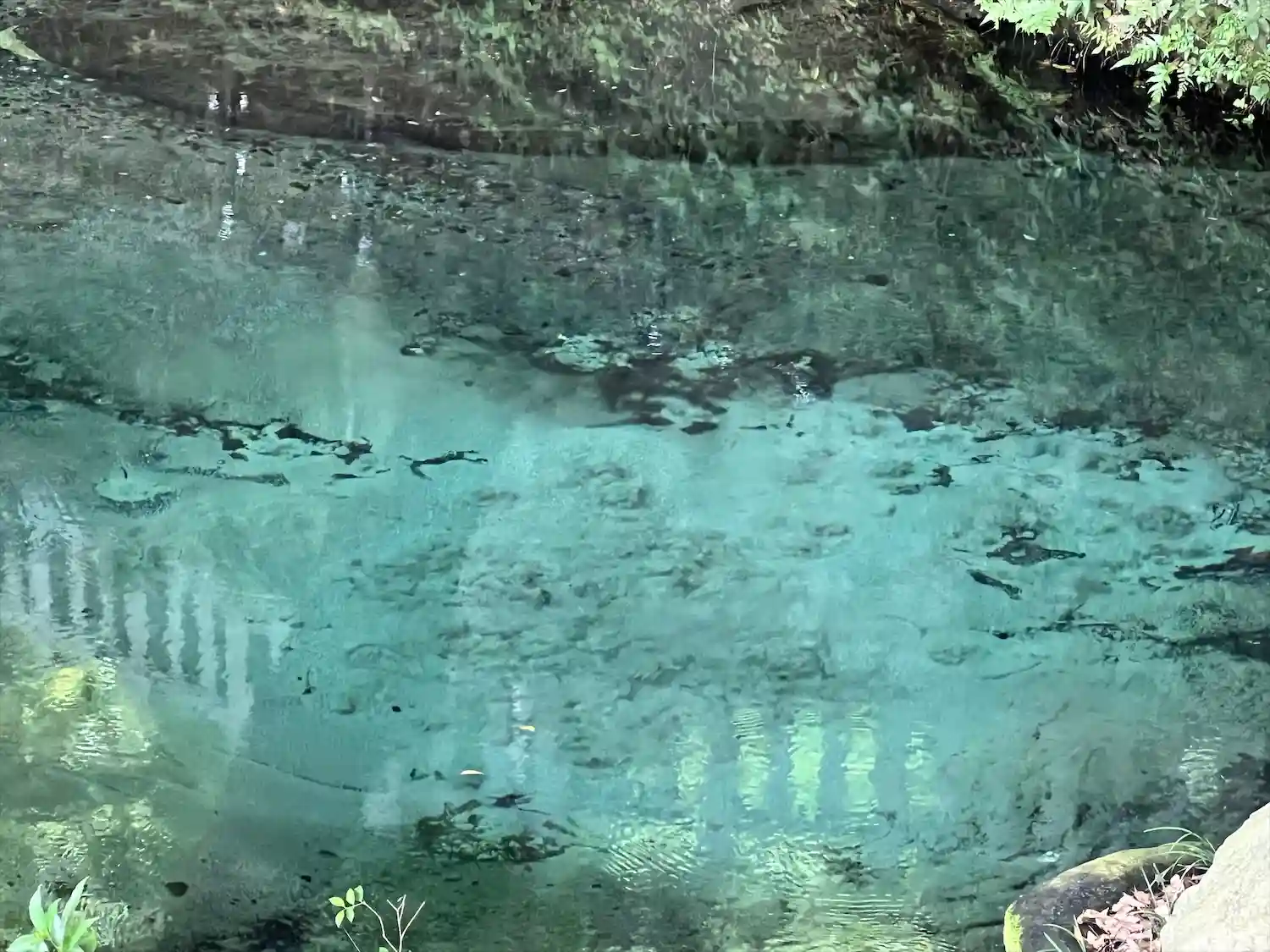 雨模様の中でしたが、泉の水は青かった😊