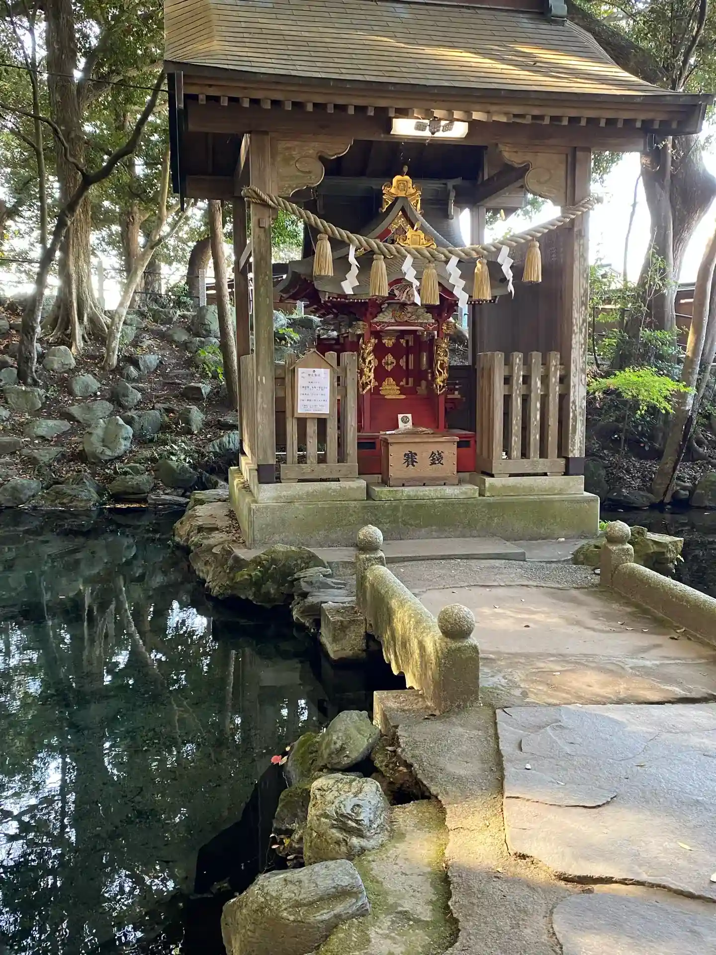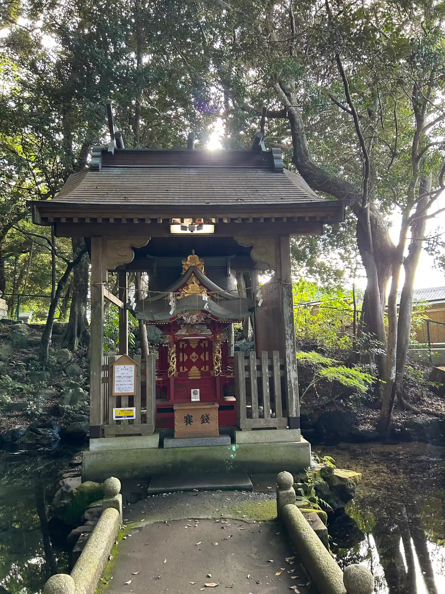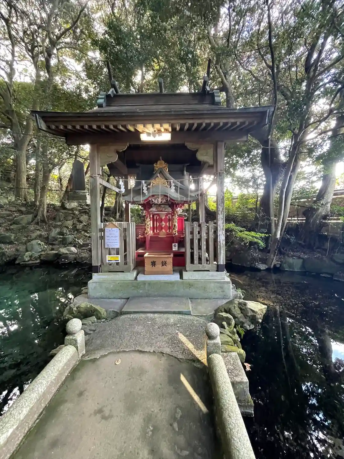 泉神社の湧き水の泉は想像以上にキレイな景色で、きらびやかな厳島神社も祀られていました。