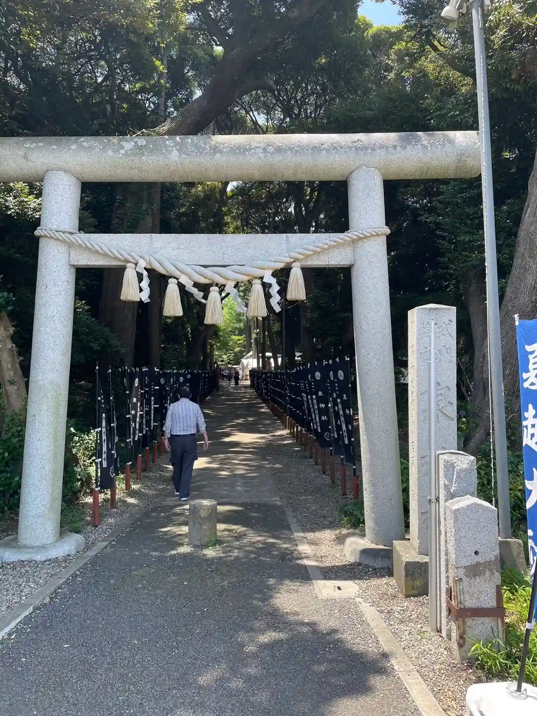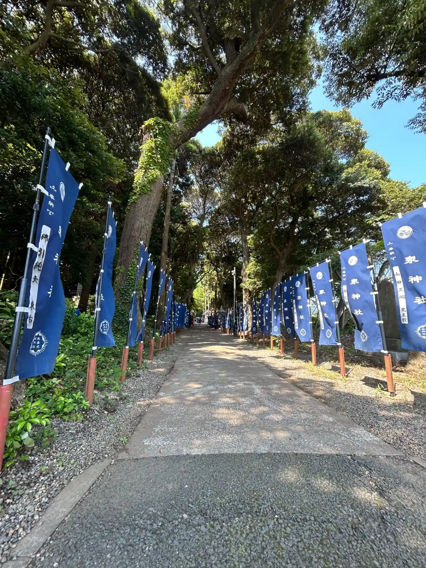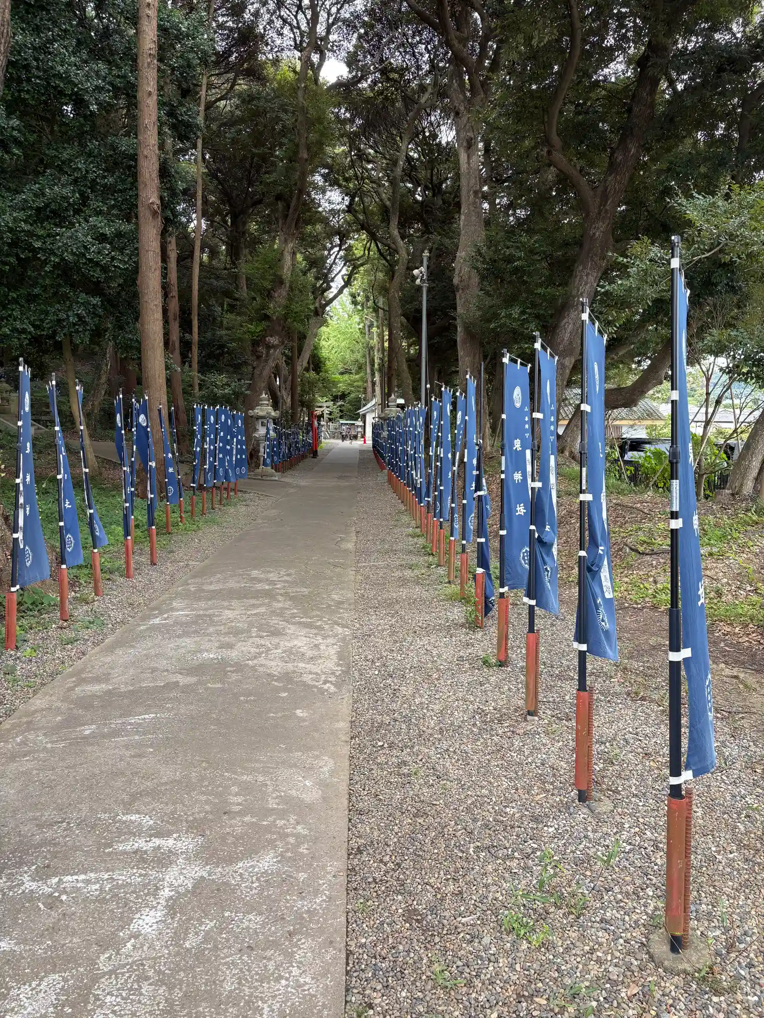 こちらはメインの参道。幟が青ってのがまたこの杜と良い感じに参道を演出してくれてますよね。