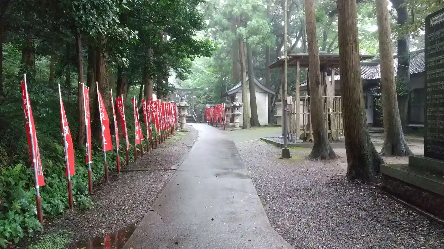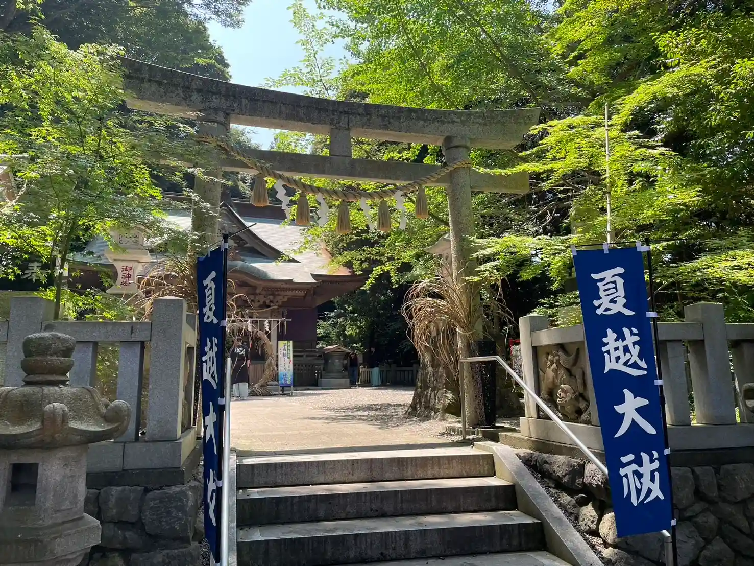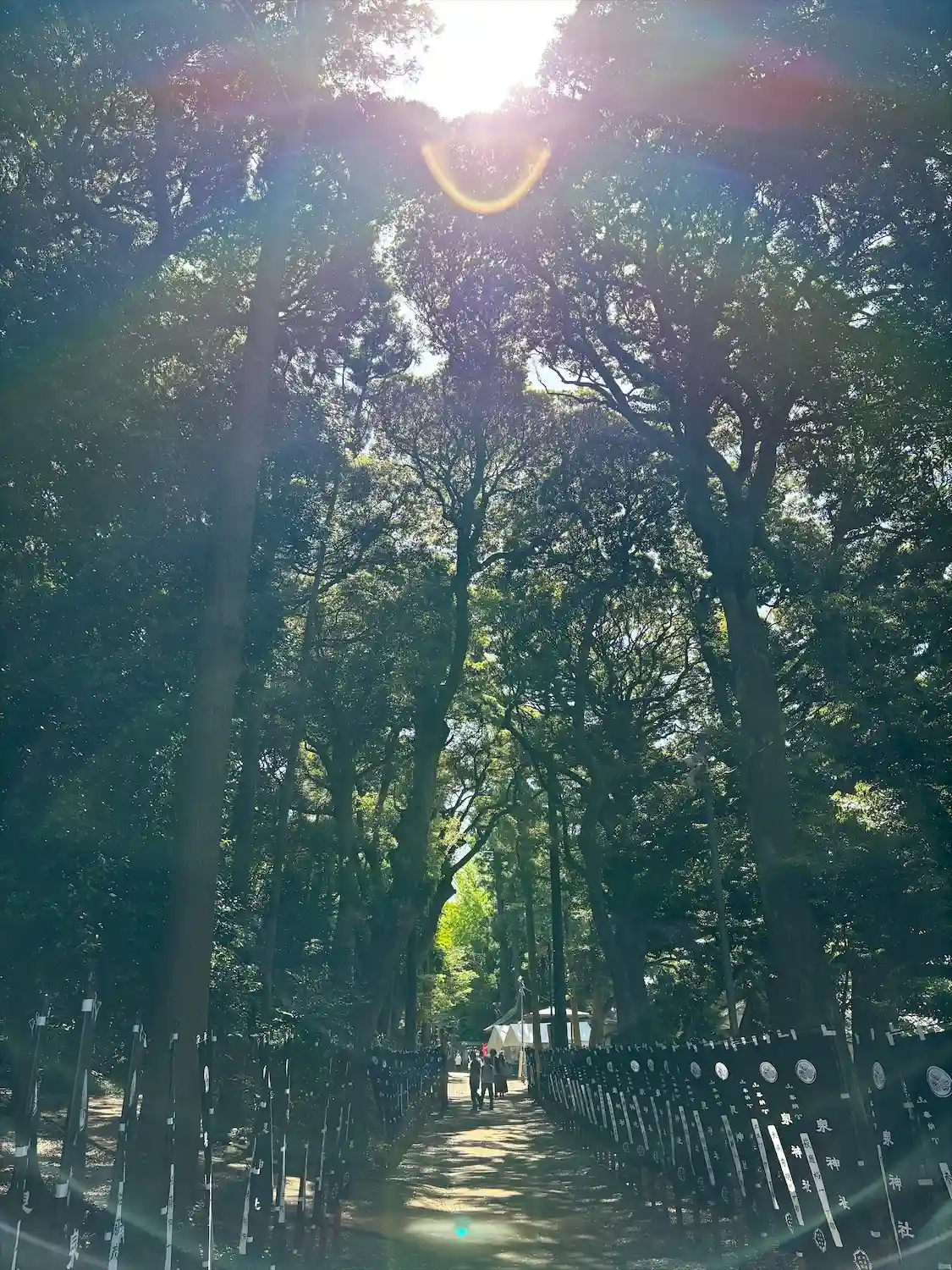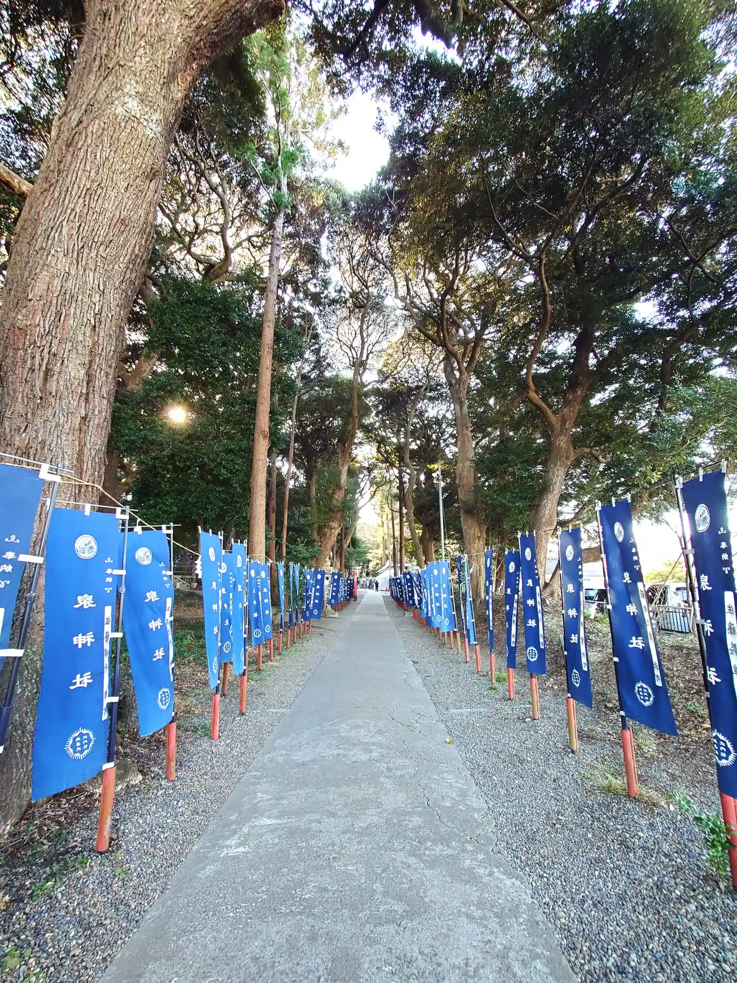 こちらはメインの参道。幟が青ってのがまたこの杜と良い感じに参道を演出してくれてますよね。