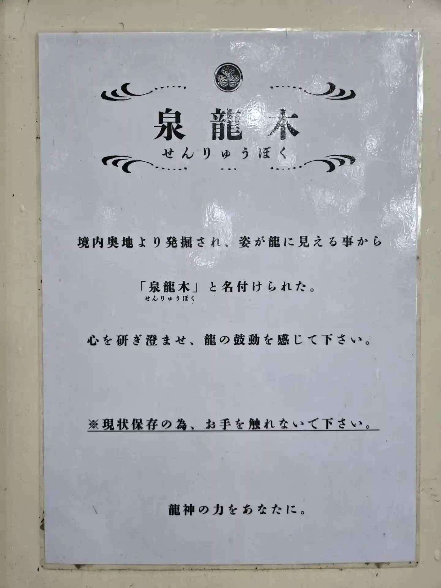 手を触れて龍神様のパワーをいただきました🐉