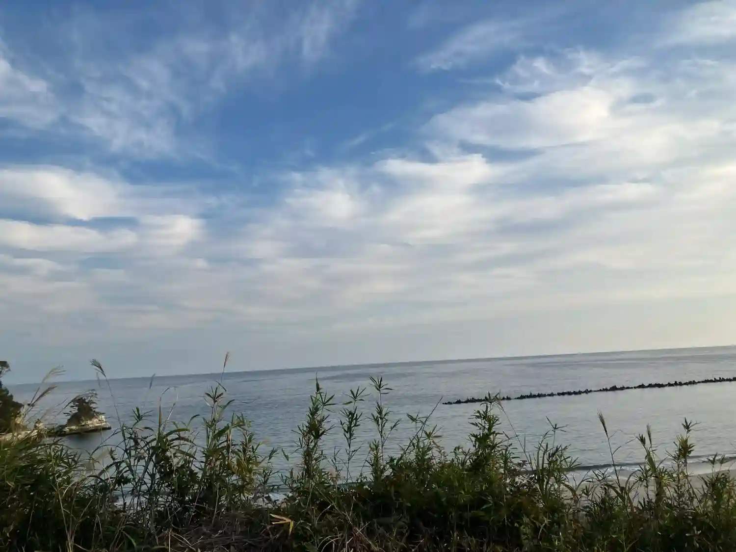 道路から参道を進むと、高台から海が望めました。緑がかった海は綺麗ですねー。