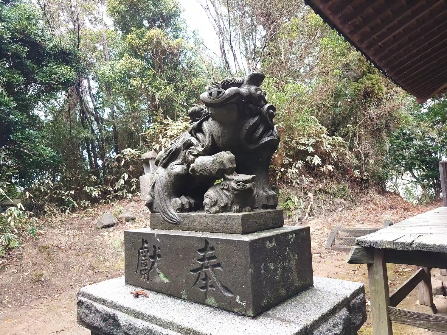 左右の狛犬と館山神社の拝殿