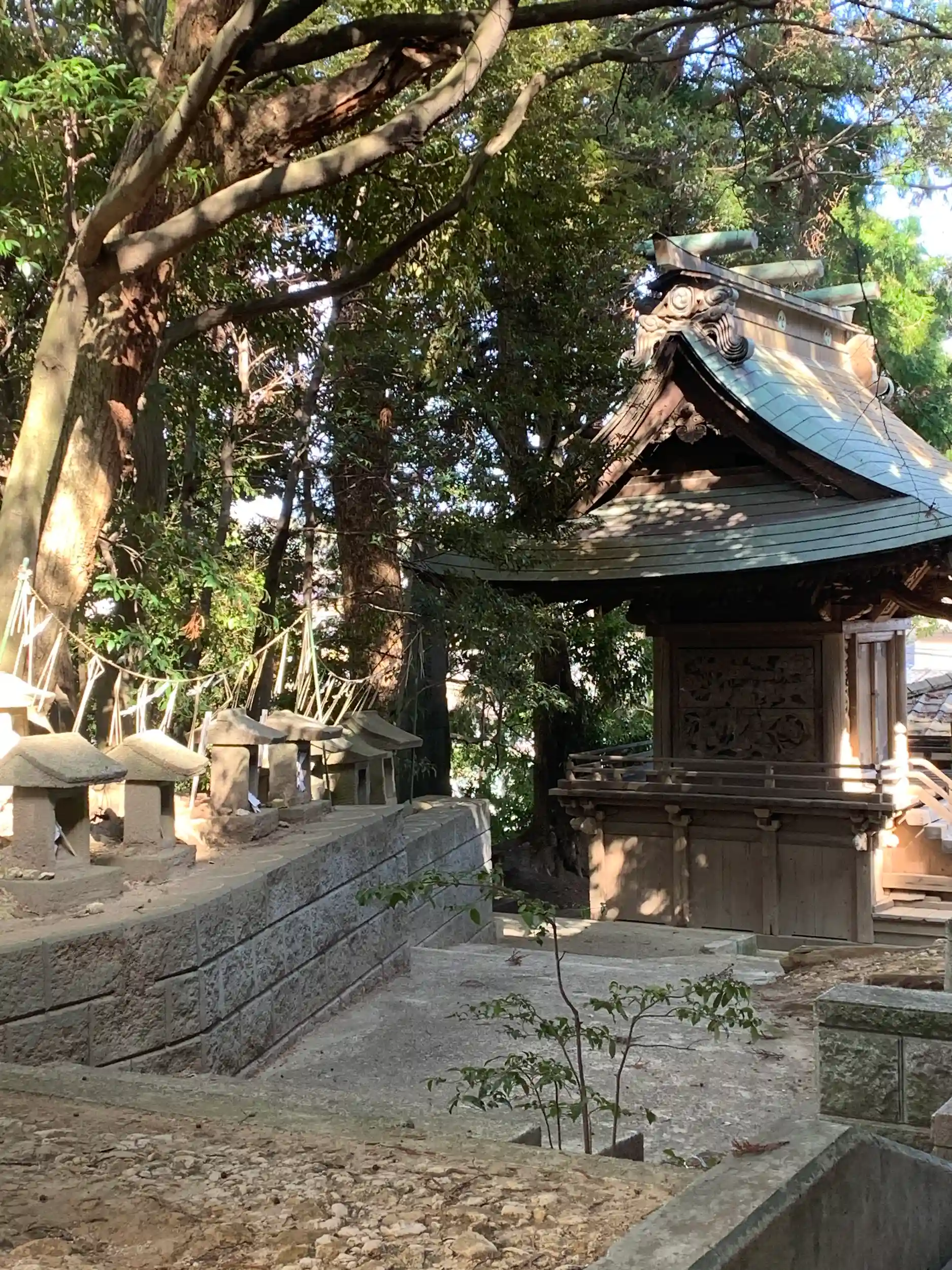 周りは木々に囲まれて、境内は広くなく段になっています。