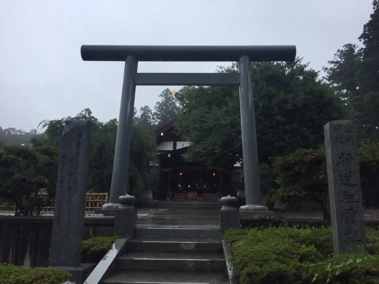 参道は杉の間を歩いて行き、気持ち良い。階…