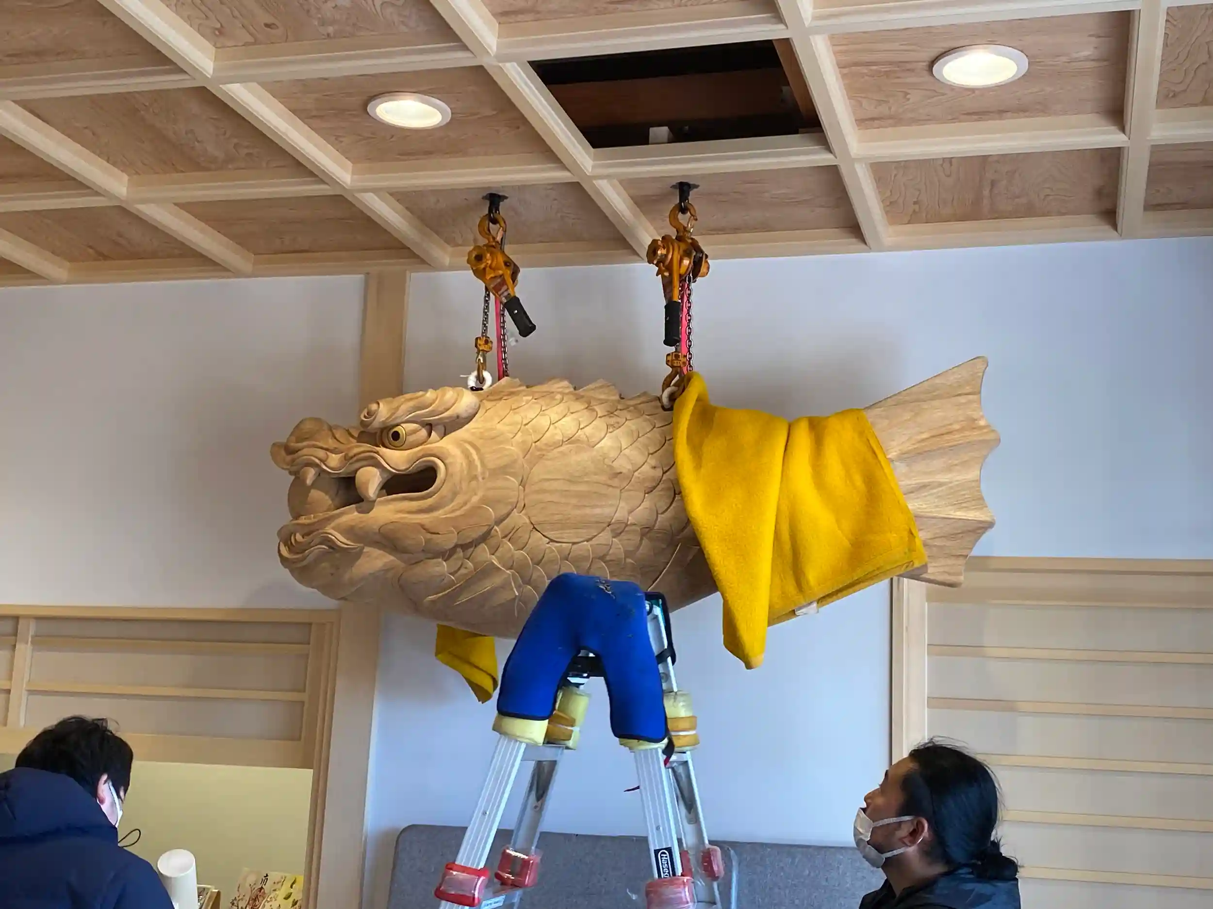 本日、魚鼓が大玄関に設置されました。