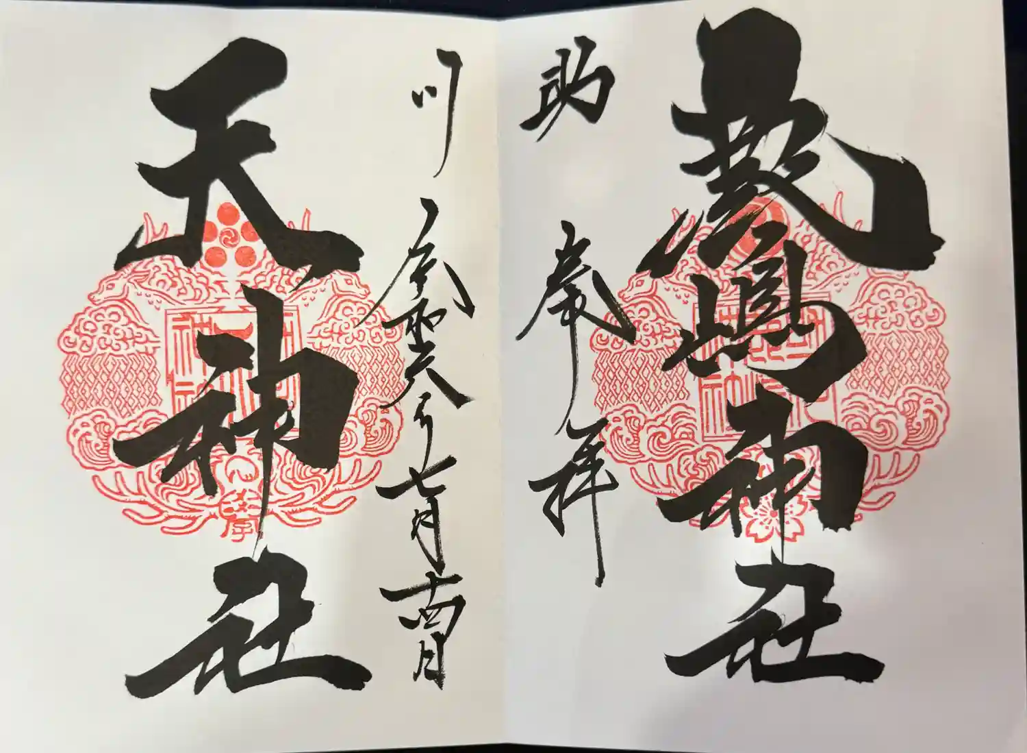 鹿嶋神社と境内社の天神社の御朱印を見開きで