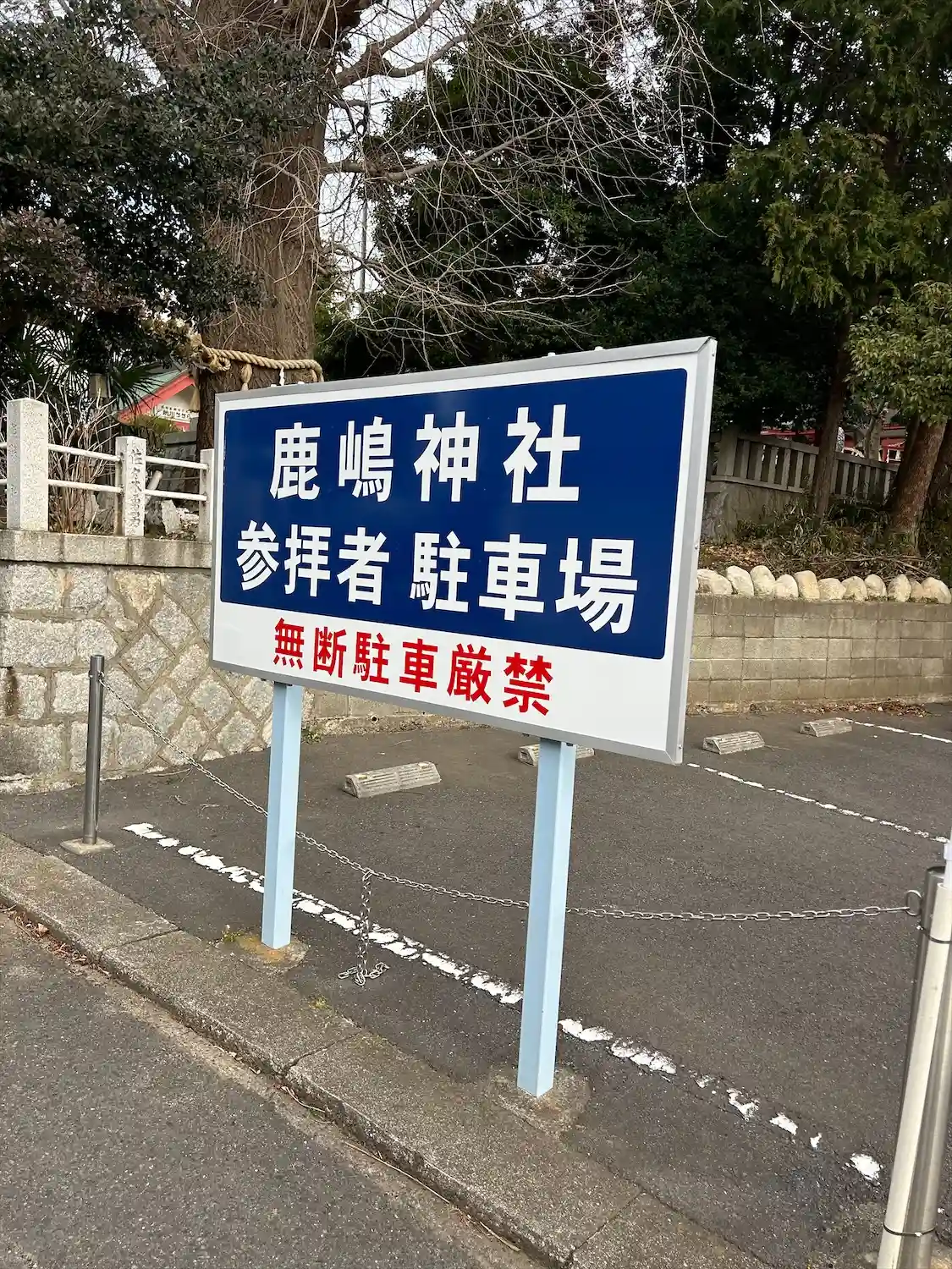 二の鳥居右手に駐車場がありました。一方通行の道なのでご注意。
