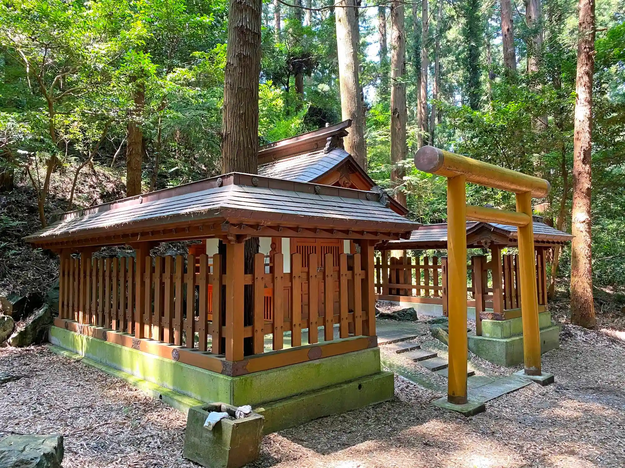 入口をくぐって左方向に進む。森は深いがちゃんと参道になっていて、徒歩3分ほどで着く。