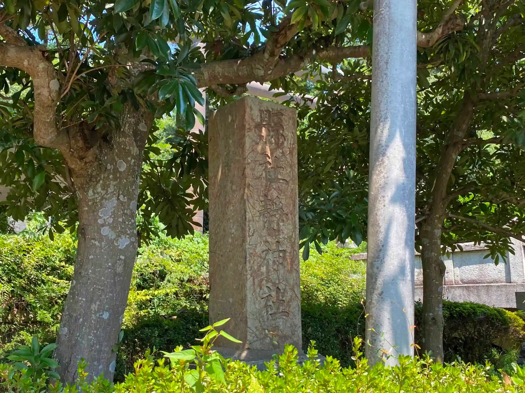 参道右手の樹木の下にひっそり立っている、明治時代の旧<社号標>。