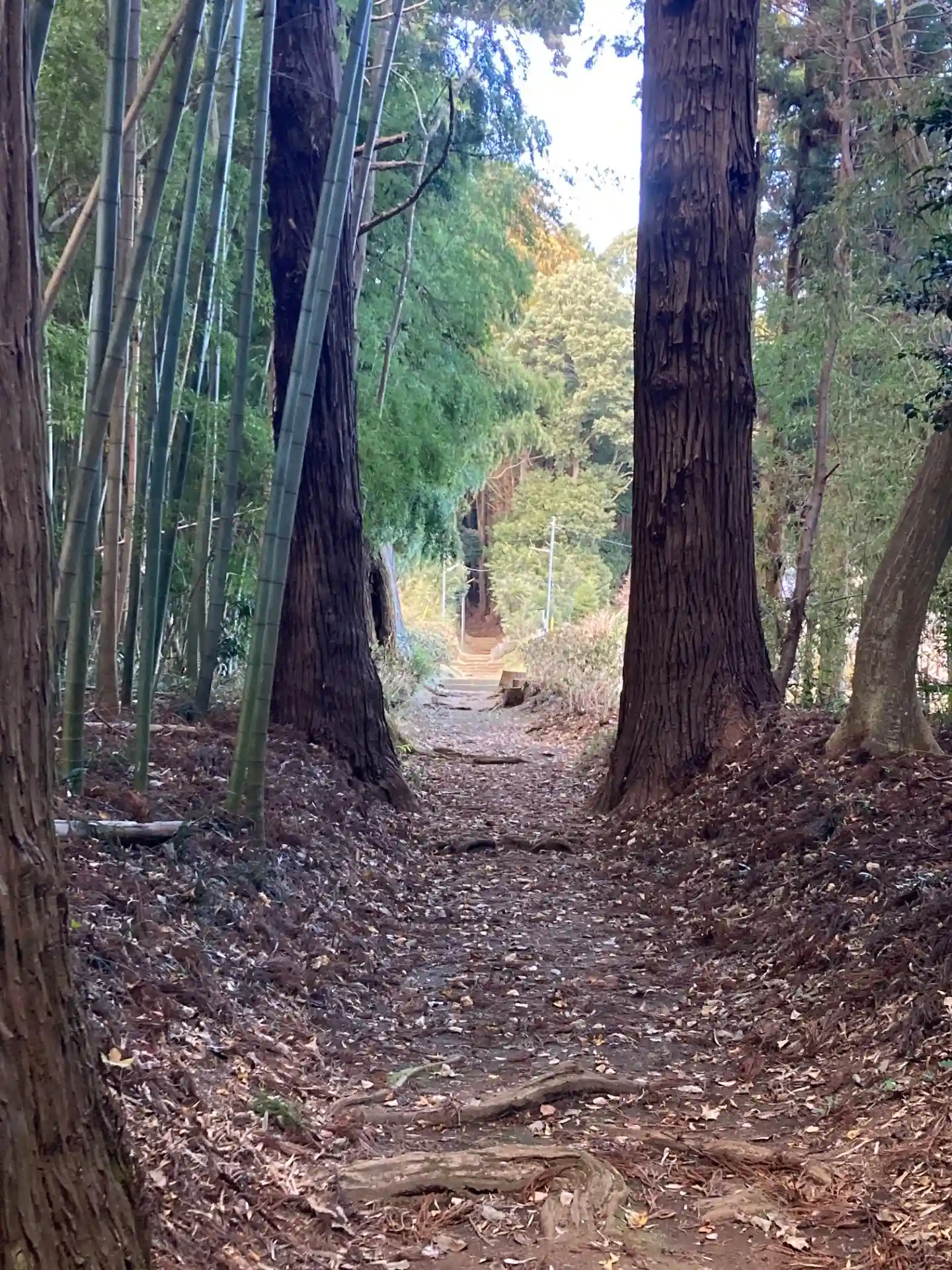 途中民家があって、大きな杉の木が並んでいる参道を曲がって緩やかに登ると二の鳥居が見えて来ます。