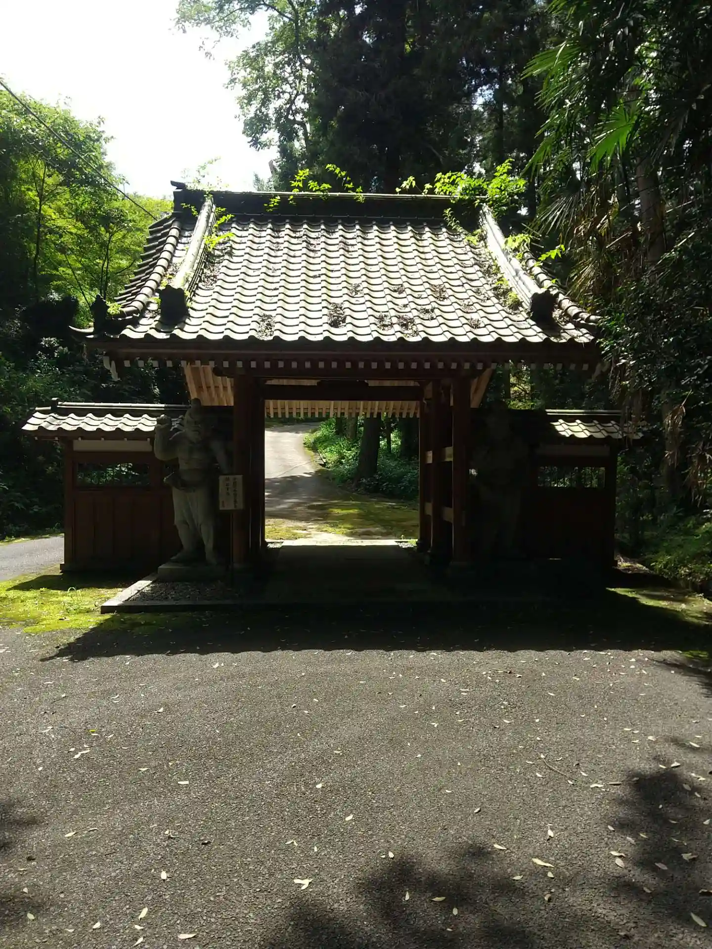 幹線道路から田んぼの中の細道を進むと山の入口へ立派な門があり安心しました😊
