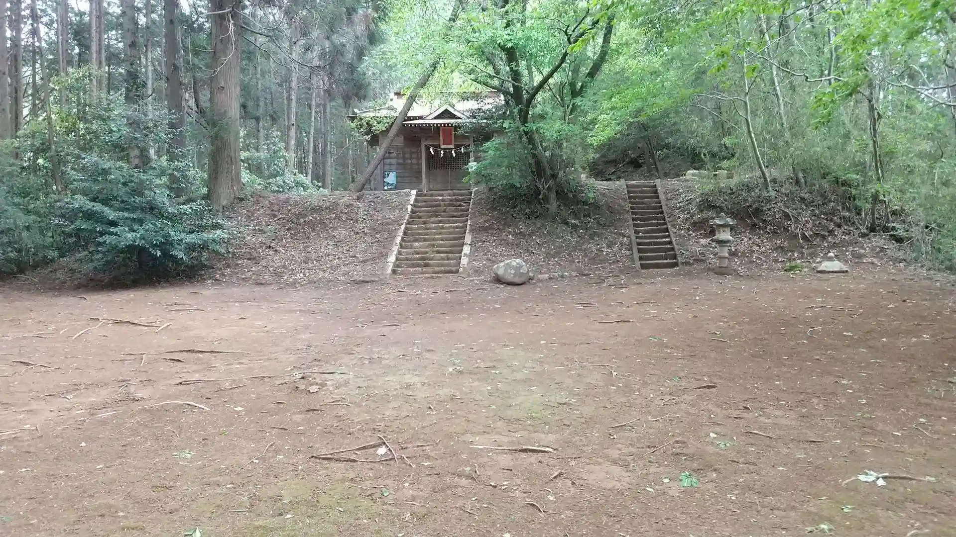 長い階段の先は広くなり、社殿が見えます。階段が二つありますが、一つはお地蔵さんの方のようです。
