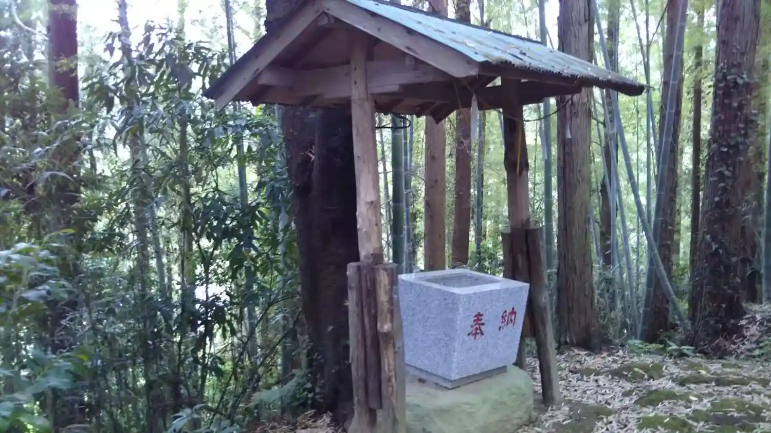 この参道を戻るので、ただでは帰れない気はしておりました。雨に濡れた落ち葉と幅の短い階段がワナとなり落ちました。