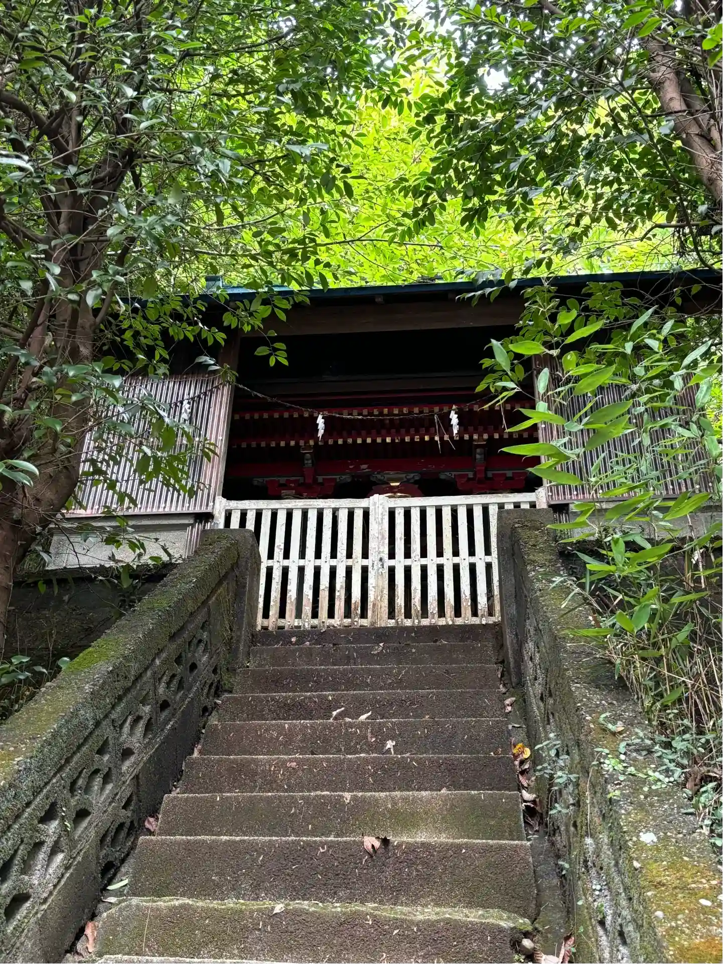 拝殿の後ろに洒落た階段があります。