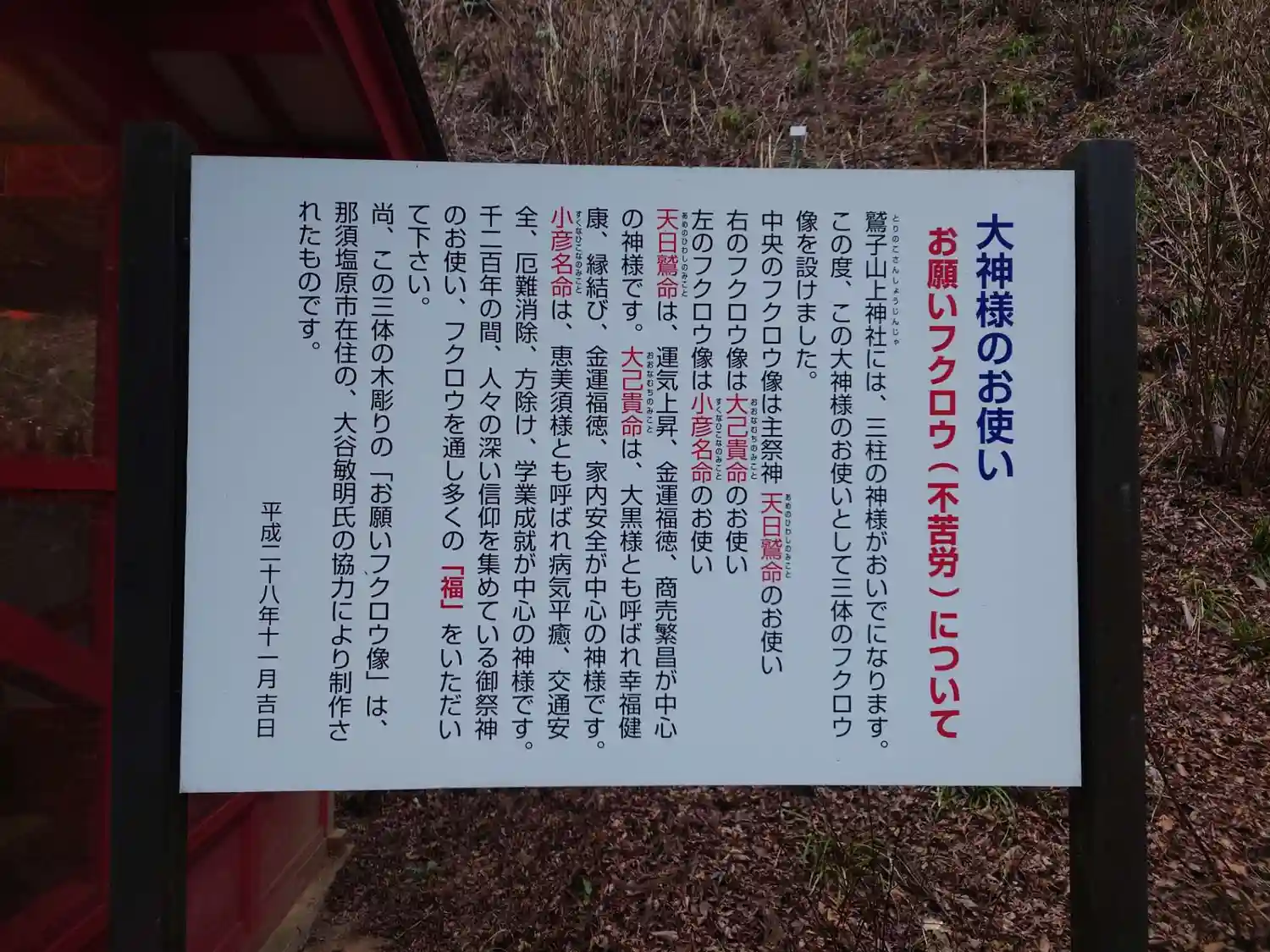 フクロウ(不苦労)の神社
