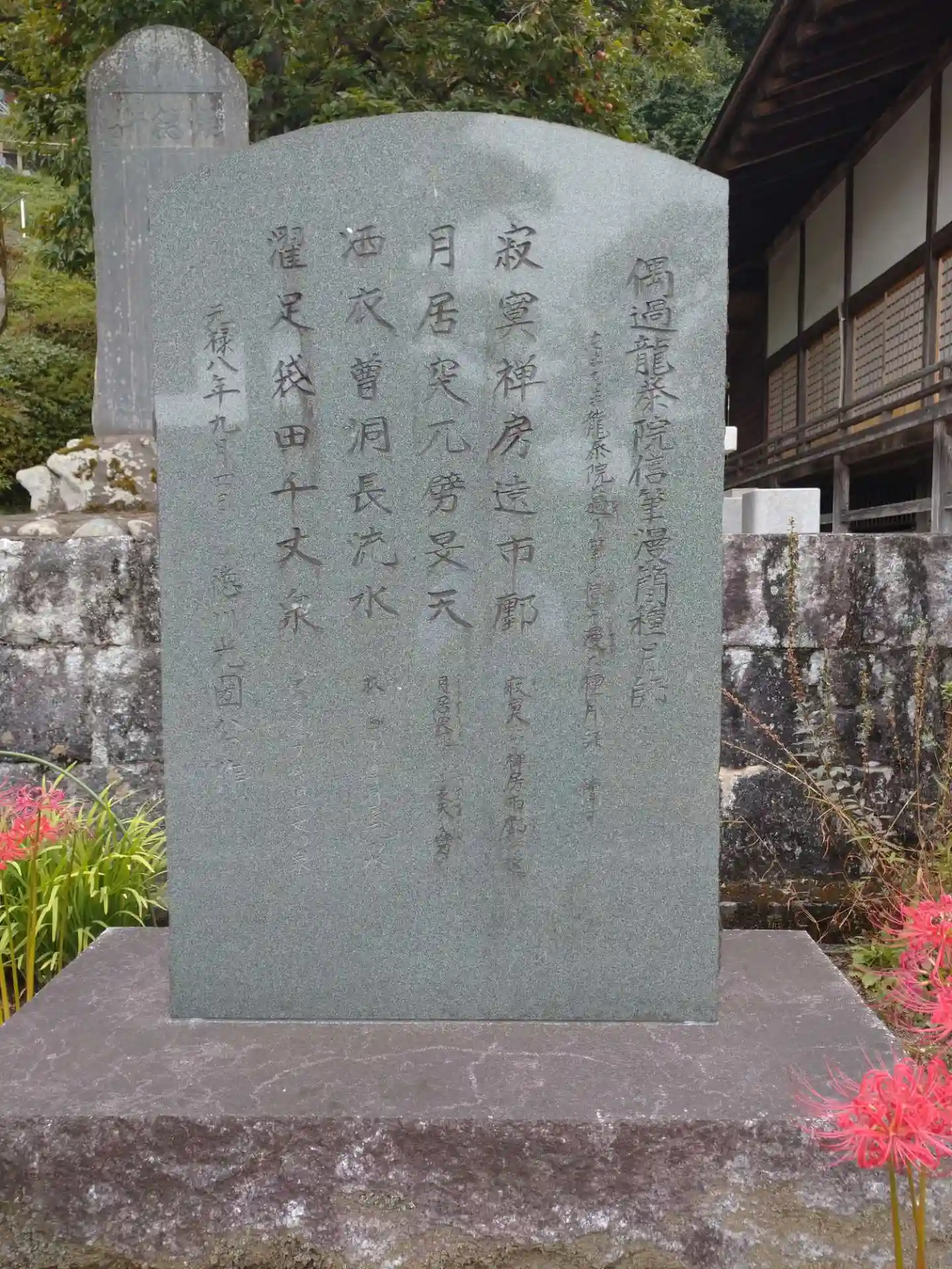 山門から入ってすぐに光圀公ゆかりの庭園や漢詩碑があり、振り返れば袋田の滝や月居観音がある奥久慈連峰が見事でした。