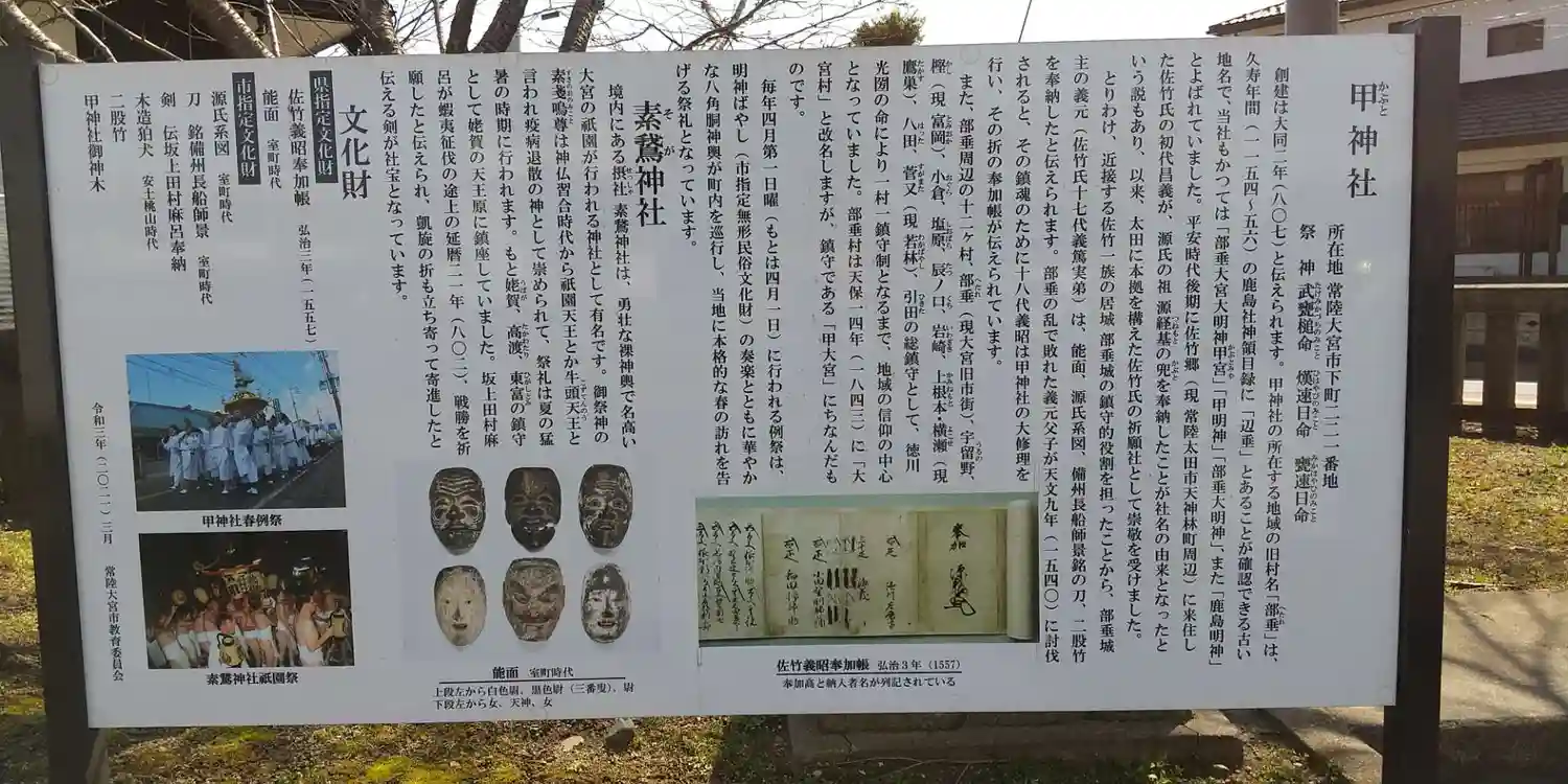 佐竹初代 昌義が、源経基の甲を奉納したことに由来するとのこと