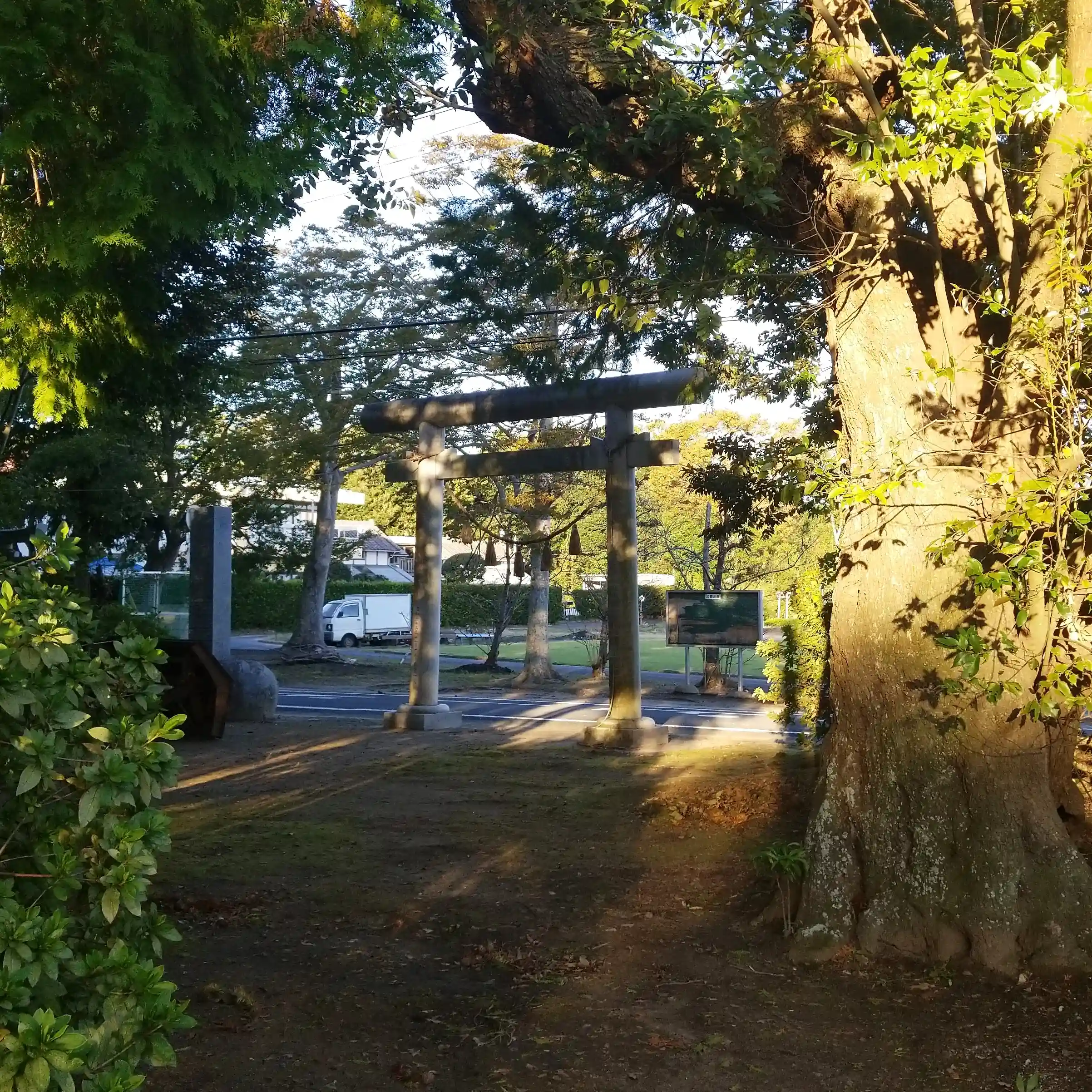 北浦の側に鎮座する熊野神社にお邪魔しました。台風一過の翌日にお礼参りしたのですが、手水舎の屋根が外れていました。