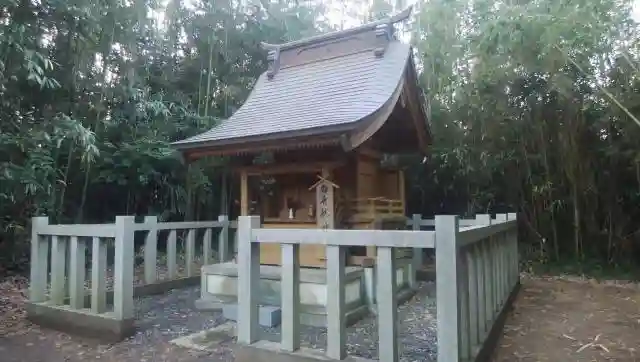 途中古めの石が積んであります。祠でしょうか。道路と参道は、深い篠藪で隔てられていて異空間に迷い込んだような錯覚に陥ります。