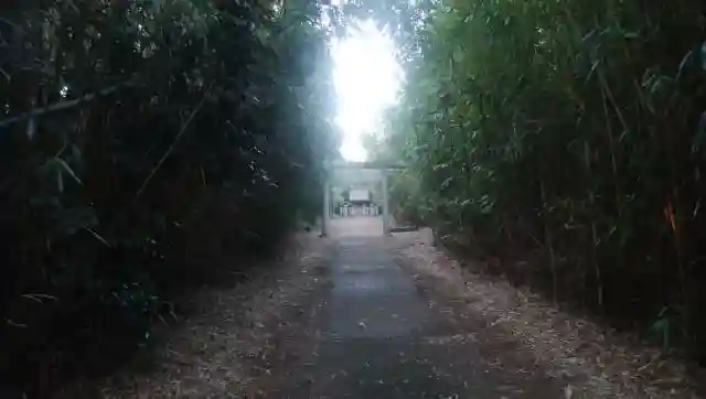 道端にぽつんと看板が立っています。「えっ!ほんとに神社あるの?」通りから斜めに入る道がありますが、行くのはちょっと勇気が要ります。