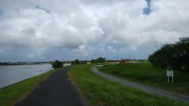 堤防はこんな感じです。霞ヶ浦と北浦の流れがここで合流します。