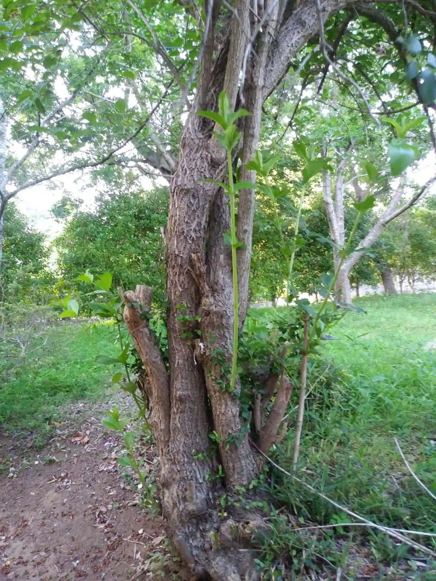 幹の中程からまっすぐ伸びる青い枝。どこかで見たことある。