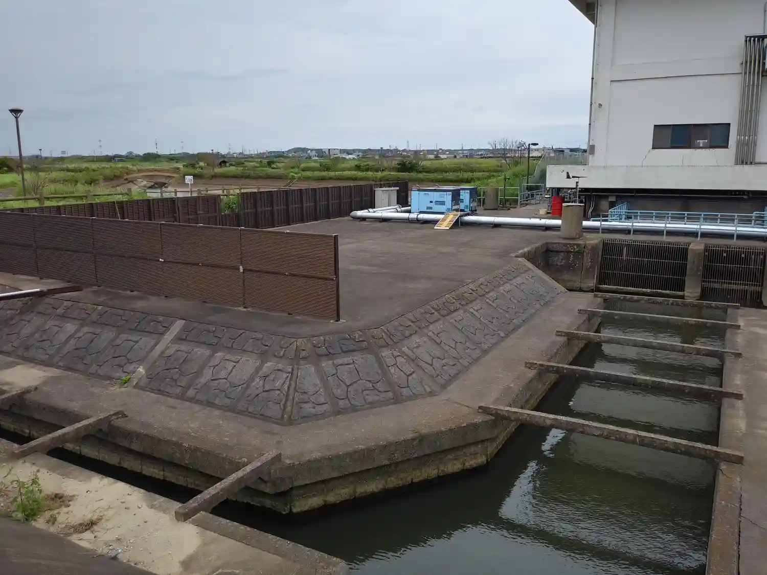 お詣りのあと、進行方面を変え鰐川方面へ。巨大な揚水施設があります。