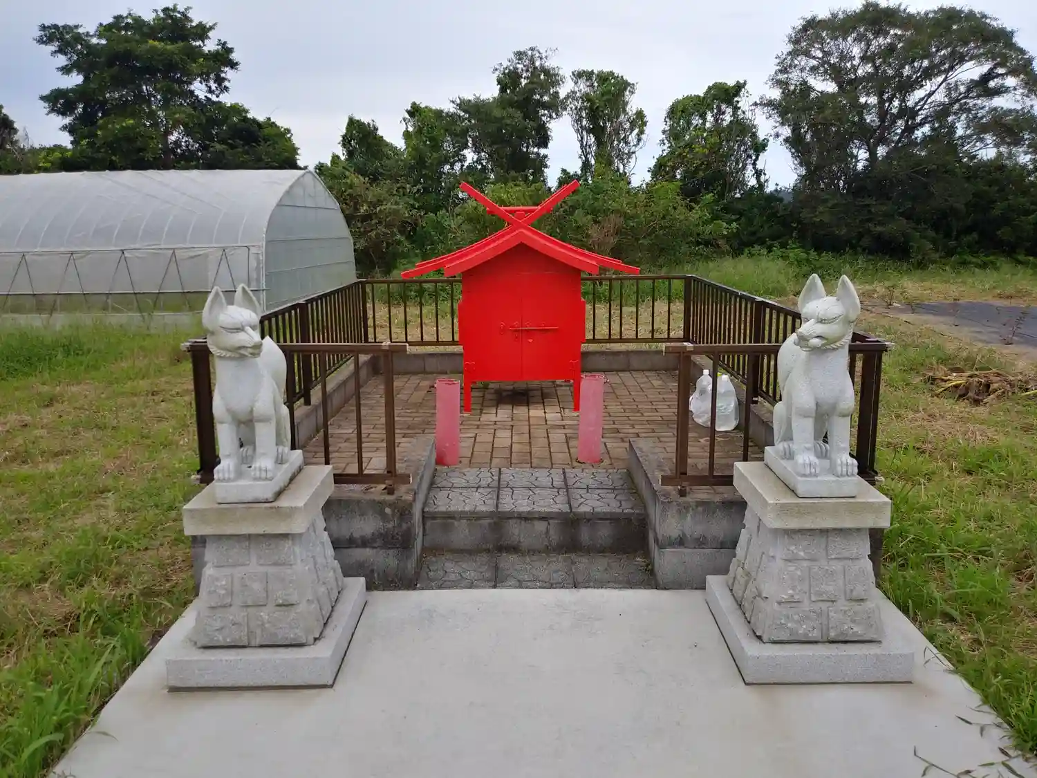 先の水神宮から一路延方方面へ。右も左も田んぼしかなありません。そんな中、農家の作業場のような建物に隣接して、この稲荷神社があります。なんとなく、プライベート神社のような趣です。