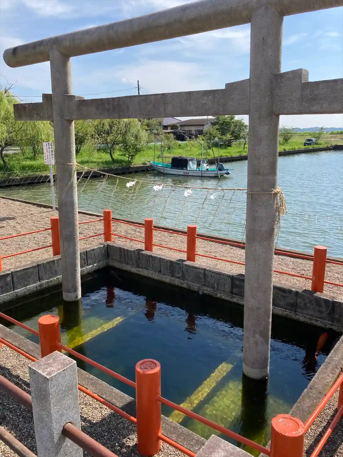 少し離れたところに川沿いに鳥居がありました。