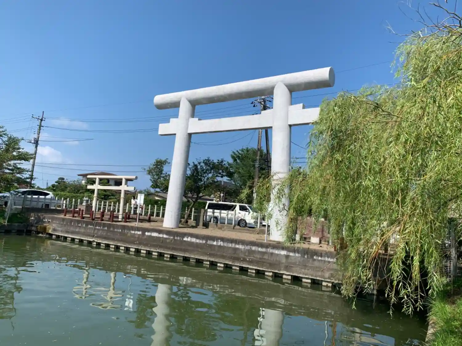 東国三社です。川岸に立つ鳥居は初めてお目にかかりました。