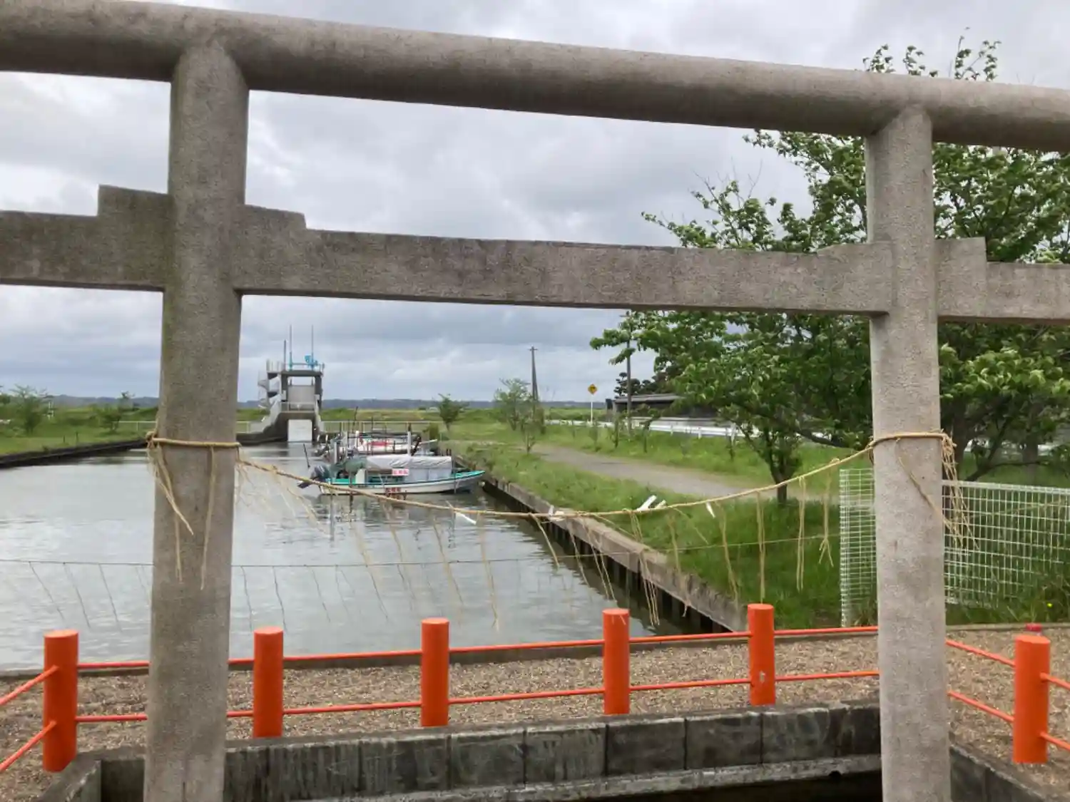 川の堤防からの一の鳥居