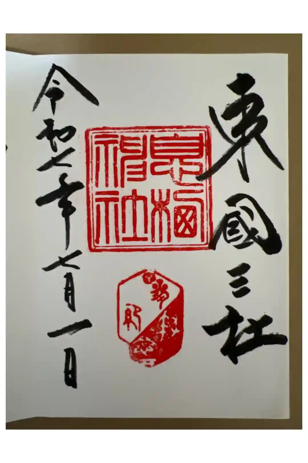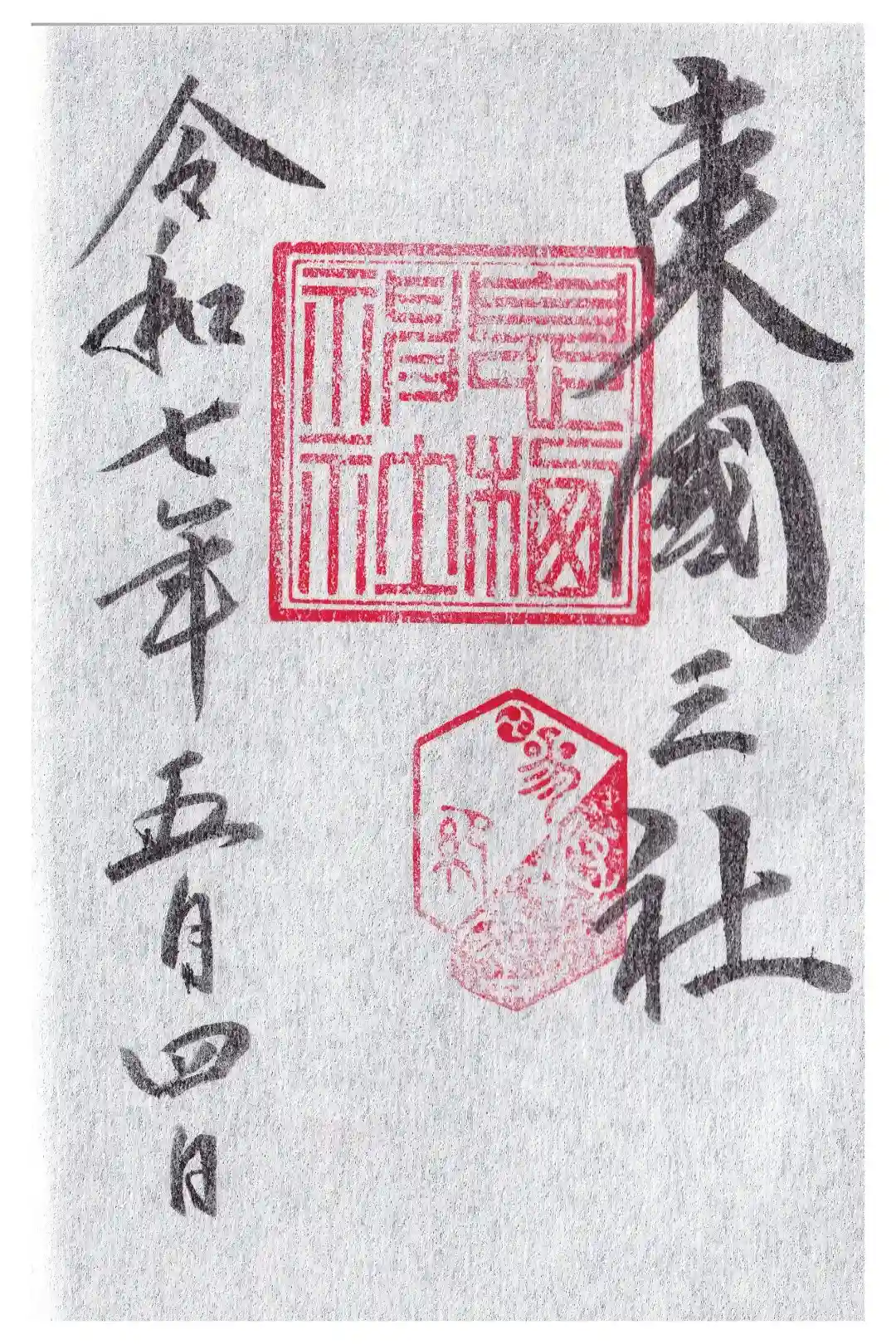 右側に「東國三社」、左側に年号日付が墨書きされています。