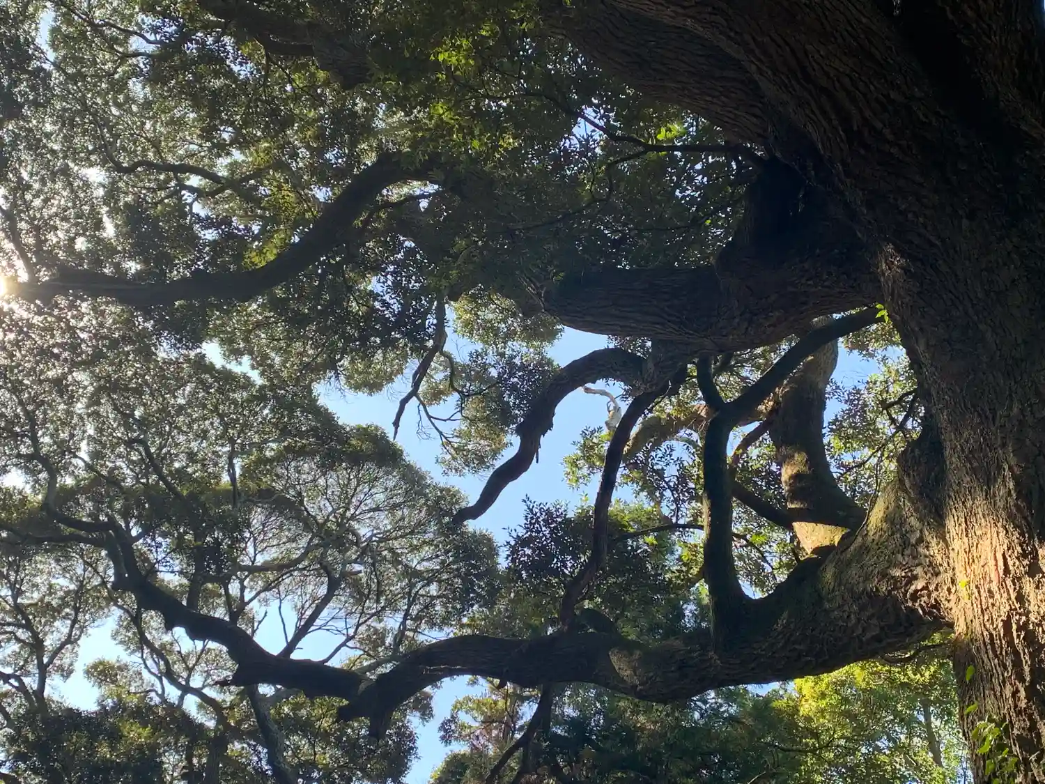 車を止めた空き地には、すごい枝振りの木があります。
