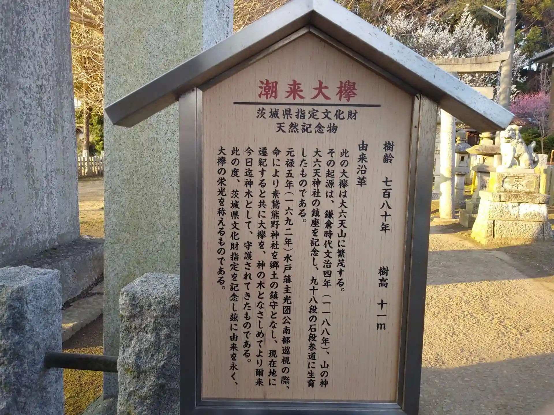 参道を進むと、先ず目に飛び込んで来るのが、一の鳥居横にある大欅です。
