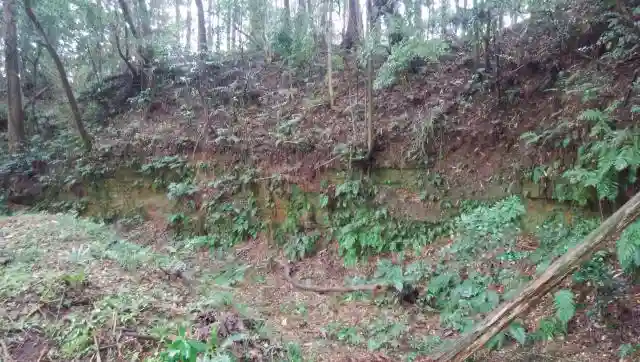いったん空濠の下に降りると隣の曲輪(くるわ)が見えます。ここ島崎城は、県北の佐竹氏の侵攻により戦国末期に廃城になりましたが、城跡の保存状態がよく、また、地域の方々の維持活動のおかげで現在でも当時の有り様がよくわかります。