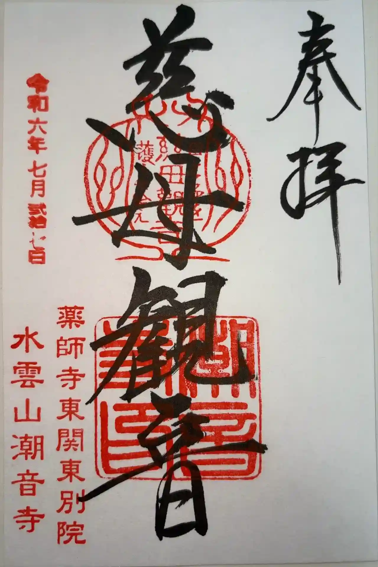 御本尊 「慈母観音」の御朱印です。