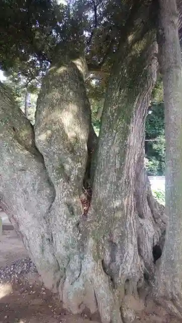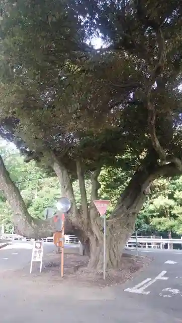 鳥居と国道の間にも巨大なスダジイが。後ろに見える森は、鹿島神宮の樹叢です。