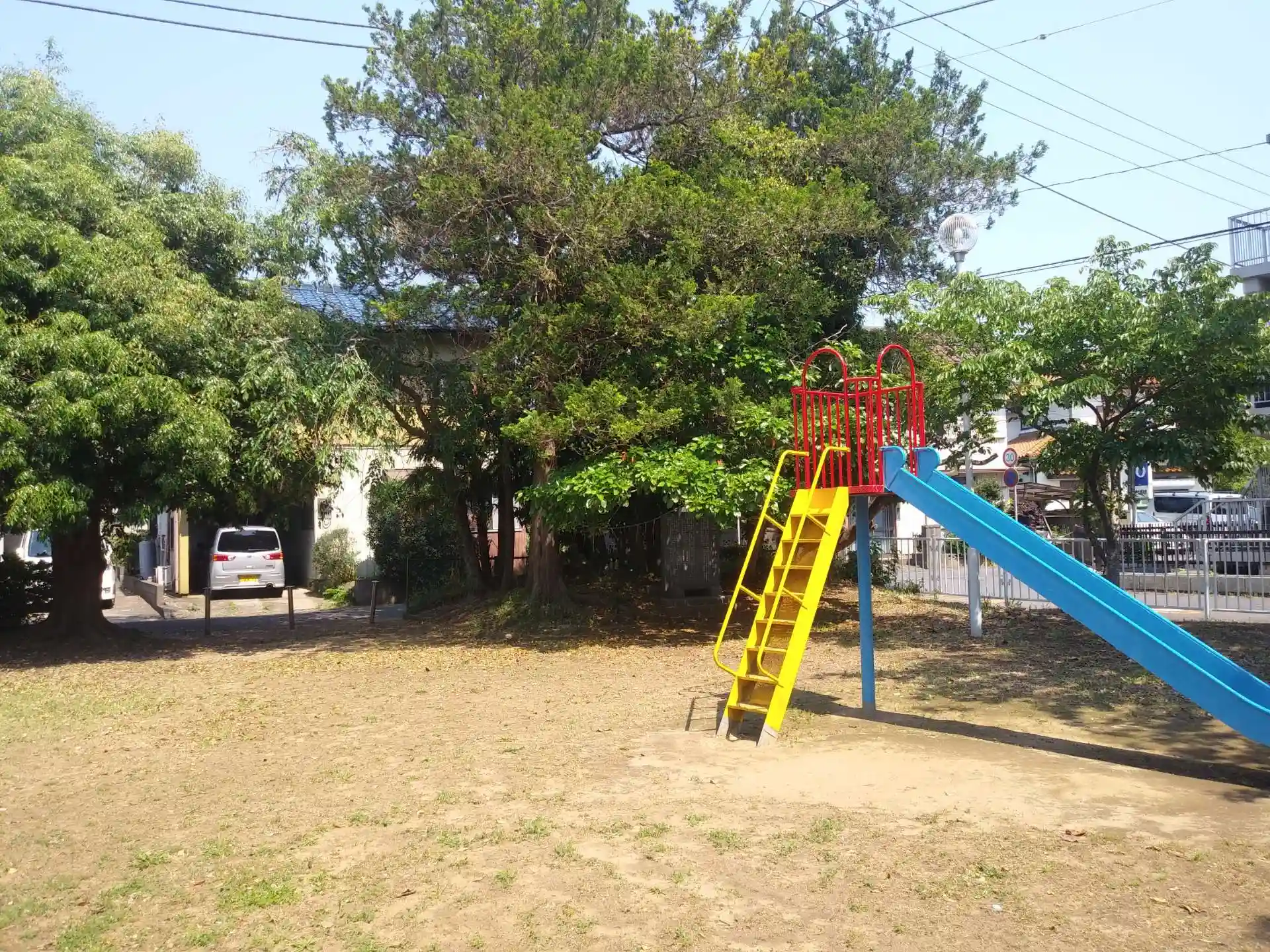 滑り台の向こうに祠がありました。