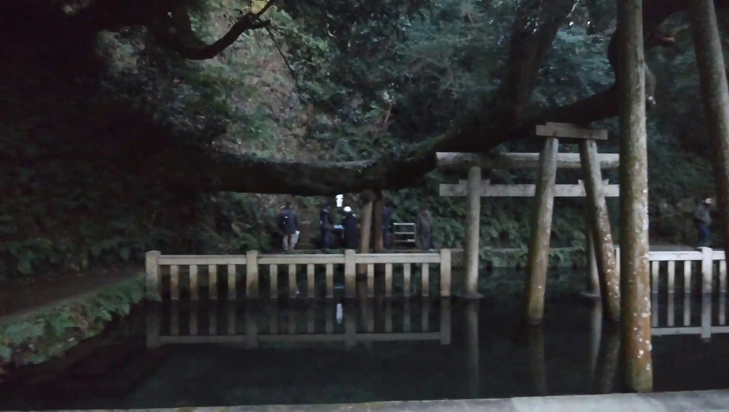 早朝、西の一之鳥居です。今日は空気が澄んでいるので富士山が見えるかと期待したのですが、あいにく地平線に雲があり見れませんでした。
