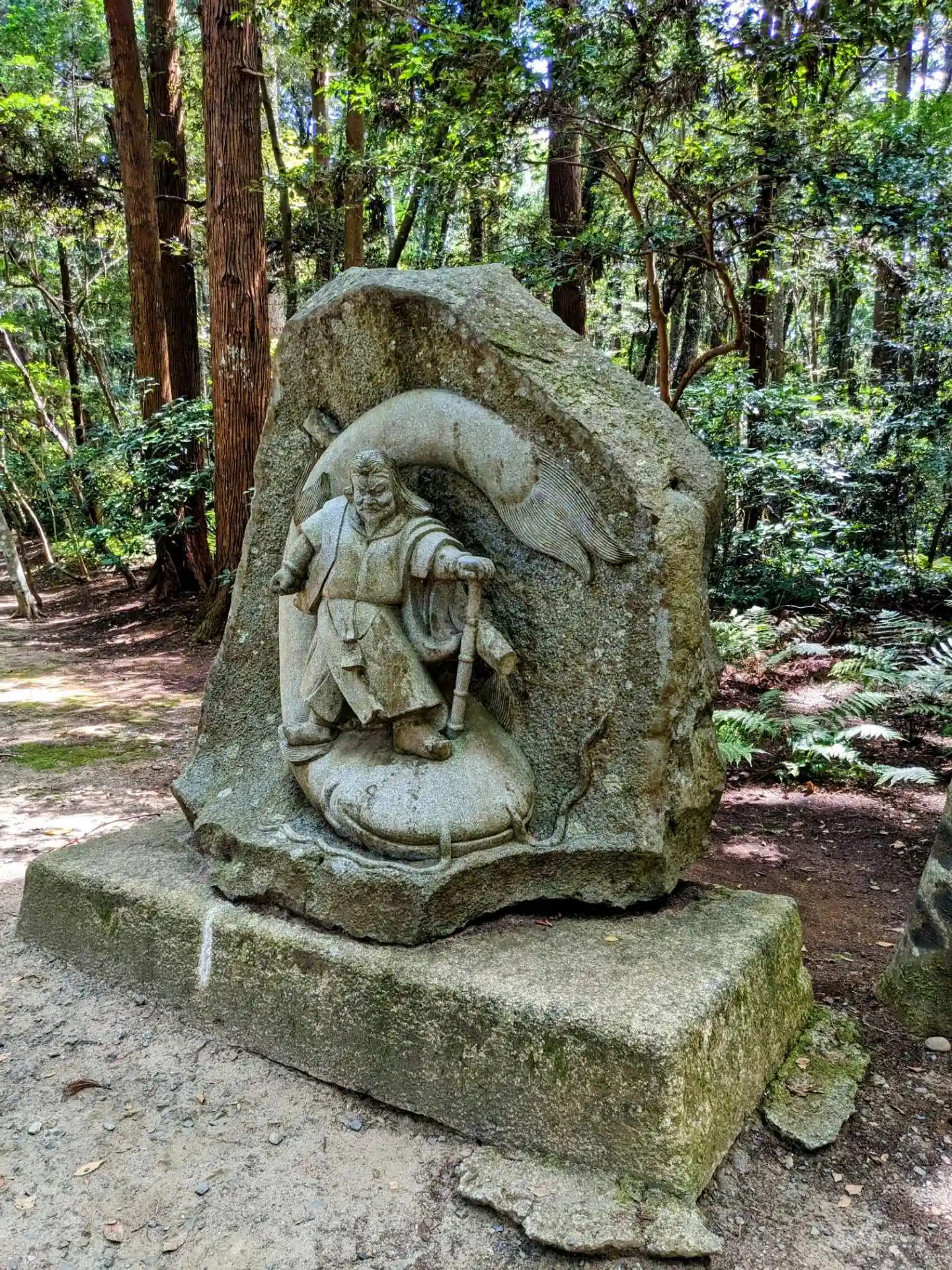 要石へ続く道の途中に御祭神の武甕槌大神が鯰の頭を佩刀で押さえつけてる石碑。道しるべをしてくださってるように思えました。