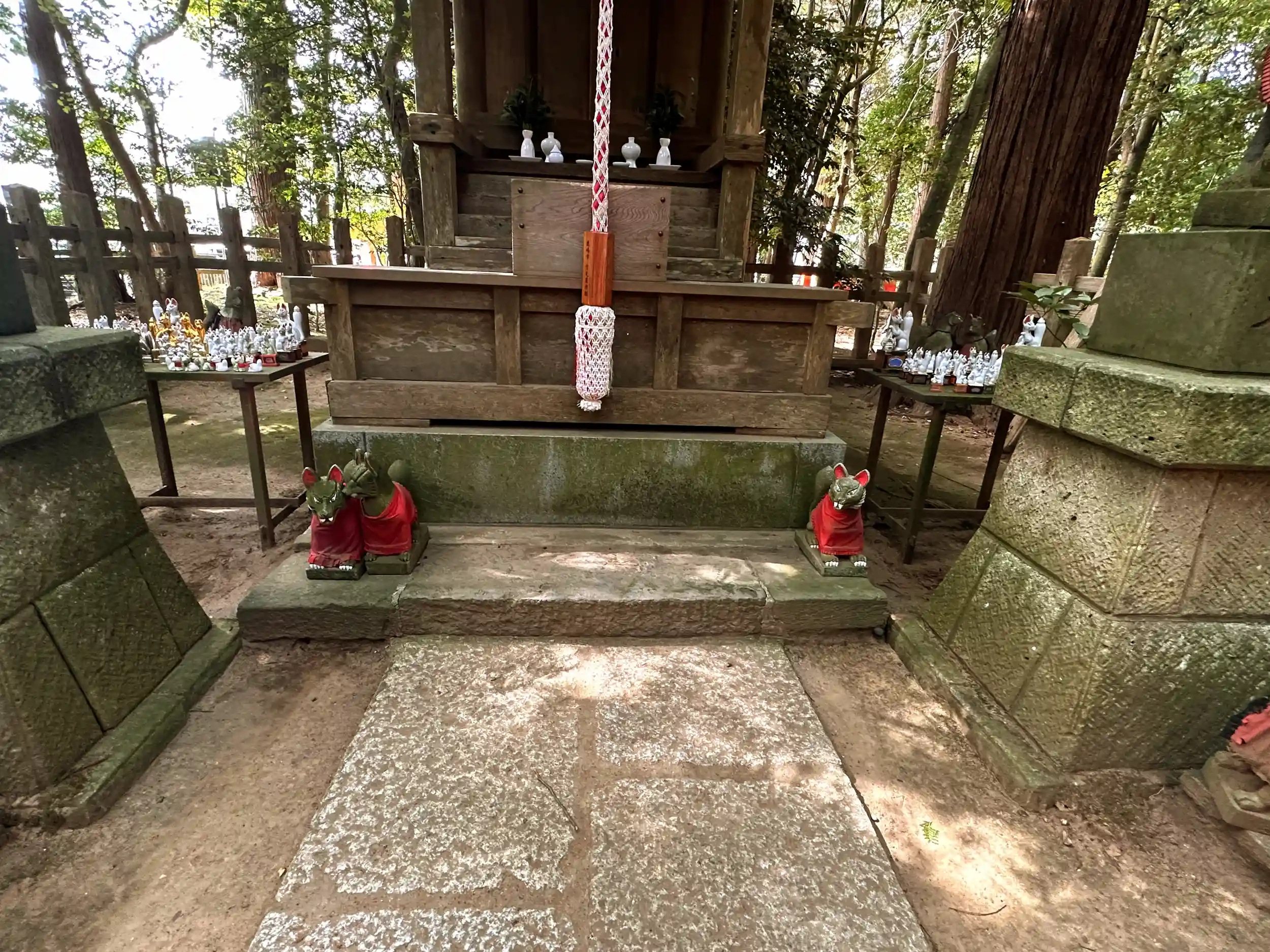 鹿島神宮の二の鳥居を超えて、すぐ左側に鎮座されている 末社です 赤い鳥居をくぐると 沢山のお狐さんが出迎えてくれます、中には金色に輝く 狐も居ました