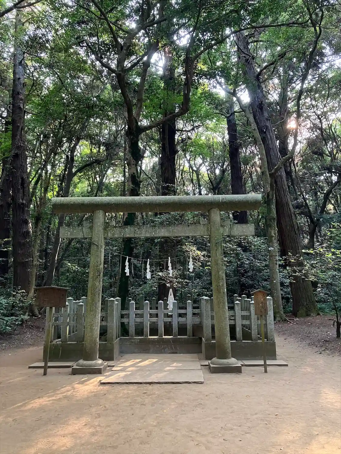 高い杉の木がたくさんあり、他の大きな由緒正しい神社と同様、荘厳な雰囲気に圧倒されました。