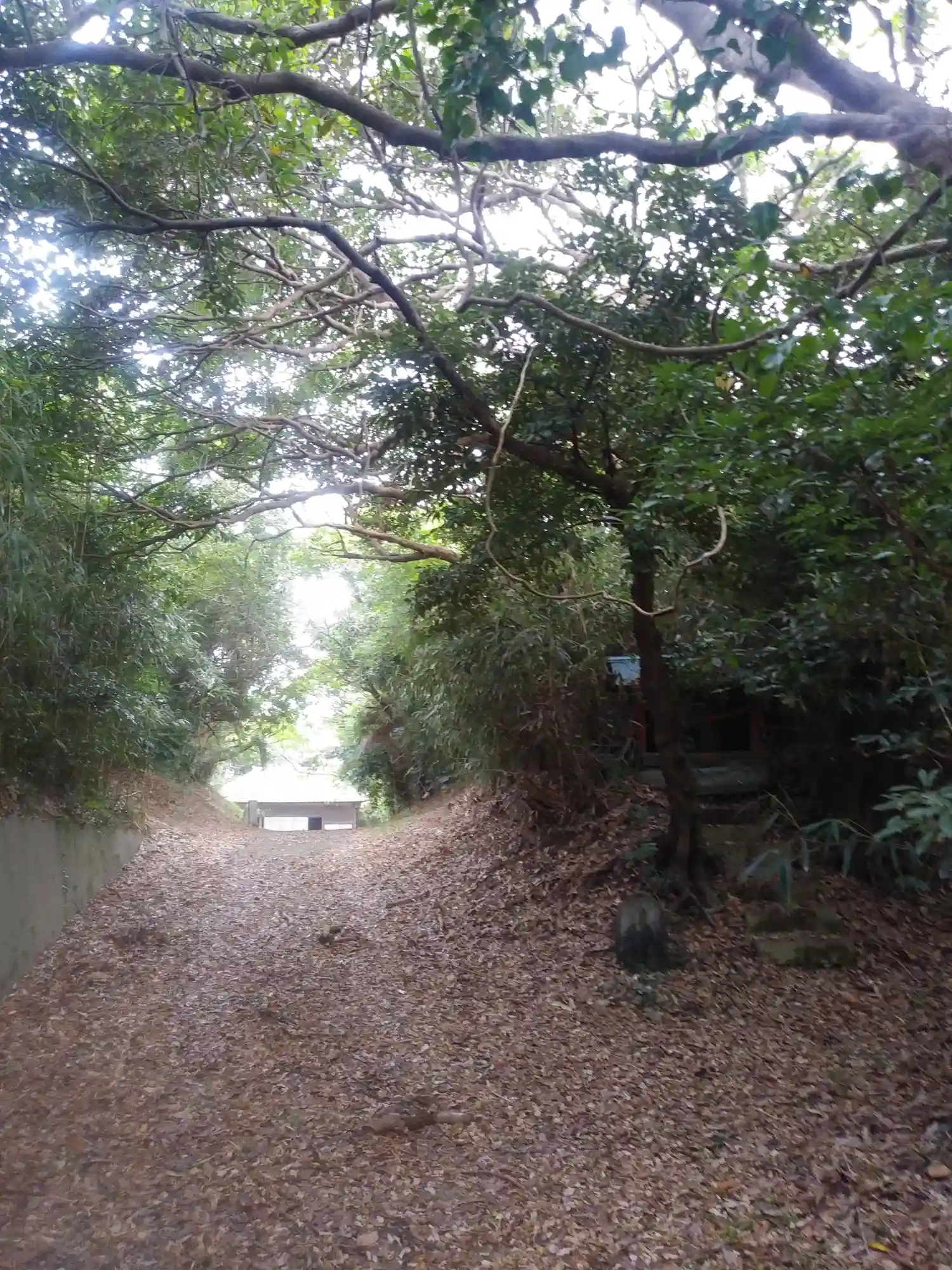 夜、下見で訪れたときは、参道の先が漆黒の闇で、さすがに怖じけ付いて一歩も進めず逃げ帰って来ました。先に投稿した稲荷神社は、逃げ帰る途中で見つけました。明るいとき、改めて見てみると、落ち葉が積もったとてもステキな参道でした。