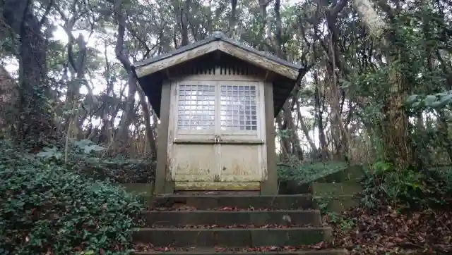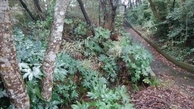 社殿から振り返るとこの景色になります。海に近い割に樹木がよく育ってます。